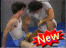 Gymnast Twins In Sexy Blue Nylon Shorts Have Sex With Their Trainer