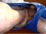 " Hot Stud bulging in highcut blue Satin Sprinter Shorts "
