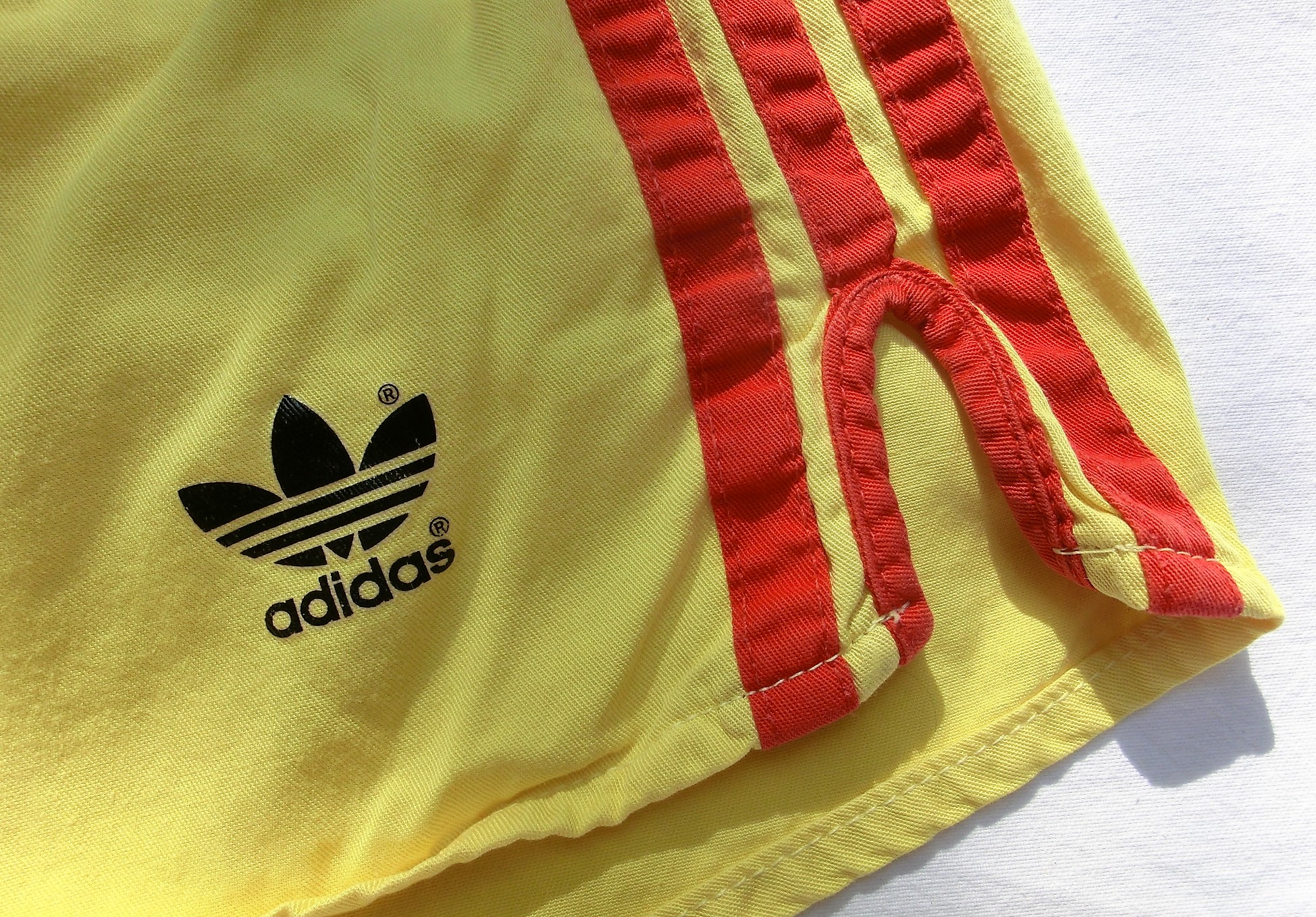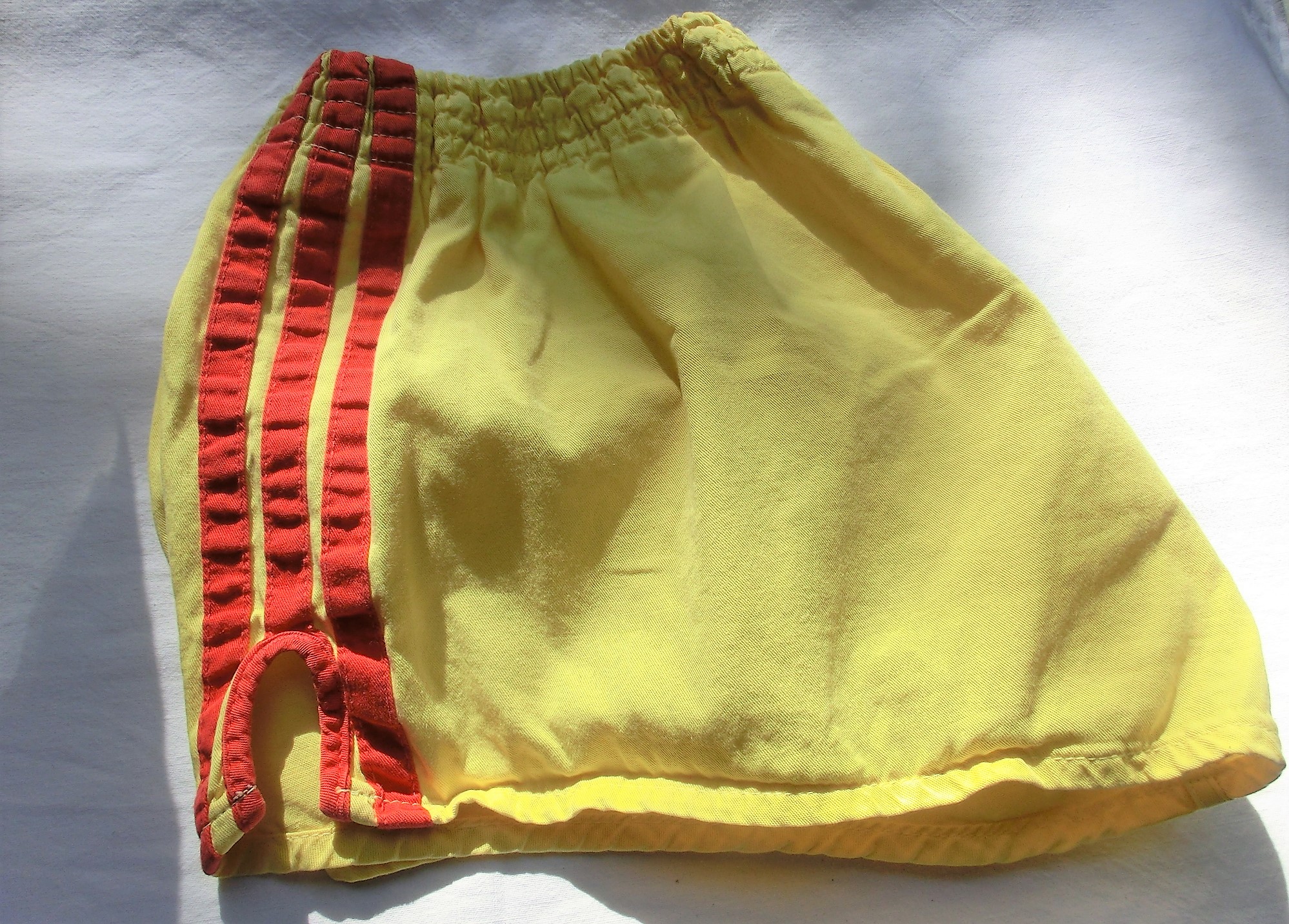 " Hellgelb-rote Adidas Baumwoll Turnhose "