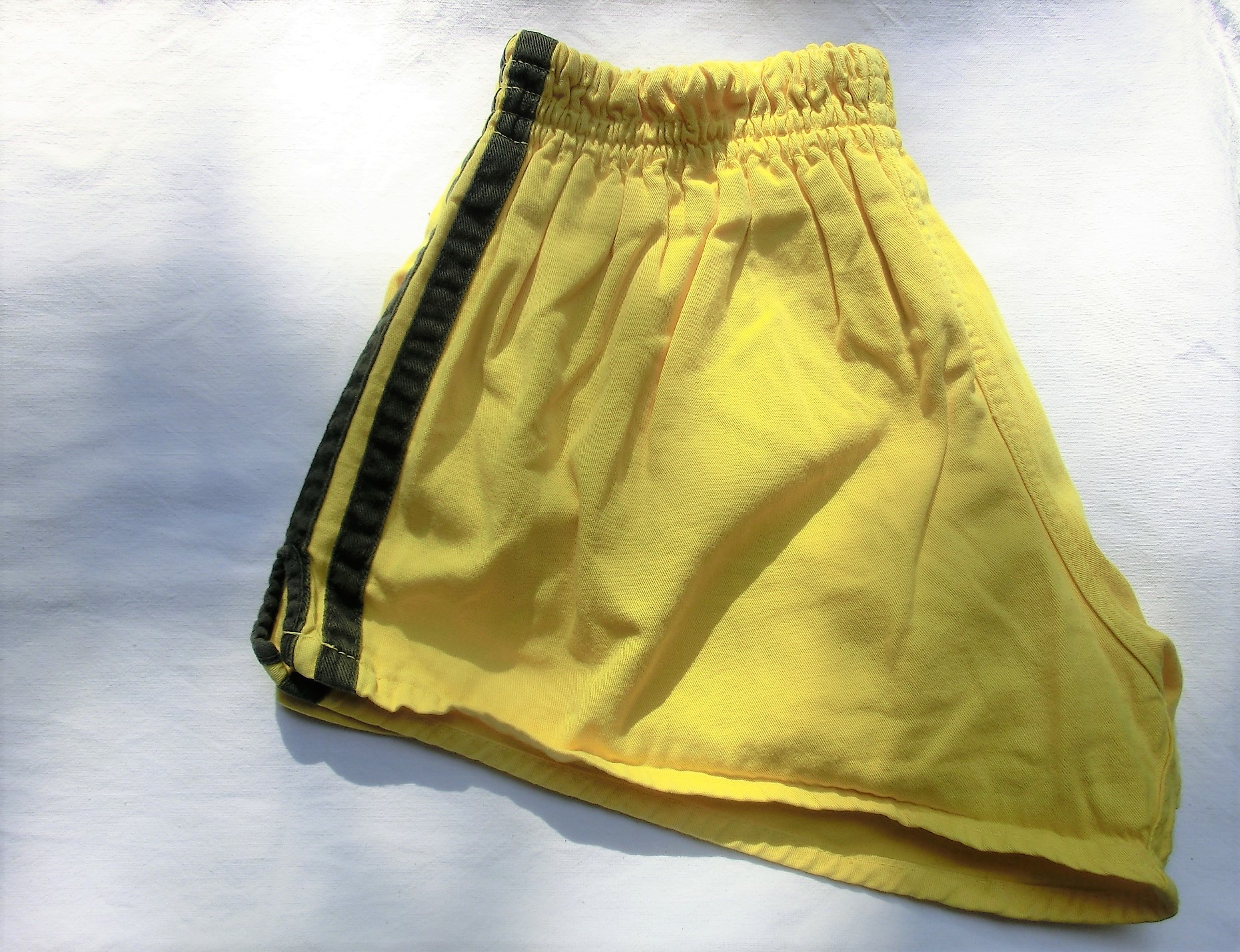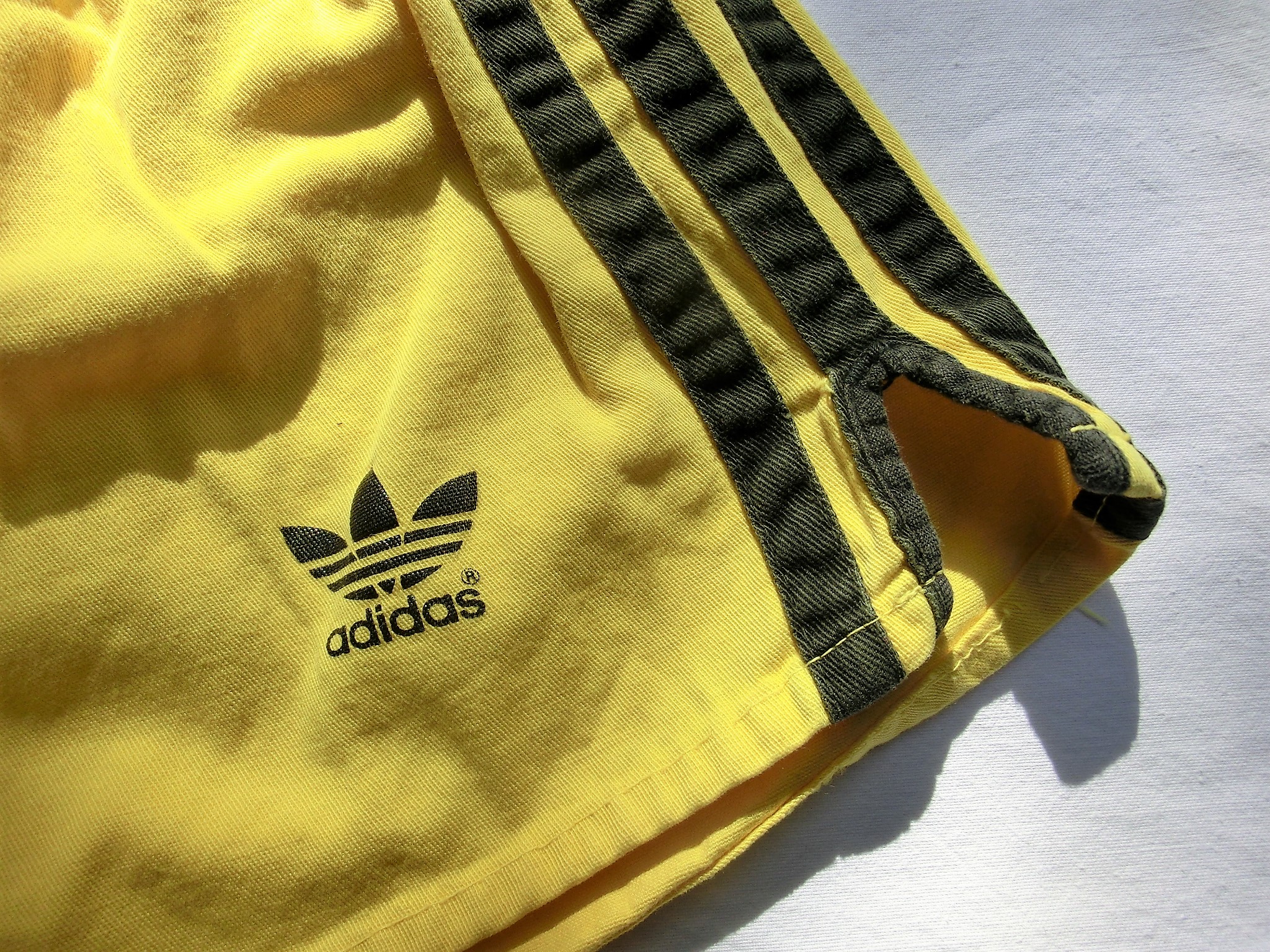 Gelbe Adidas Baumwoll Fussball / Turnhose weichgewaschen