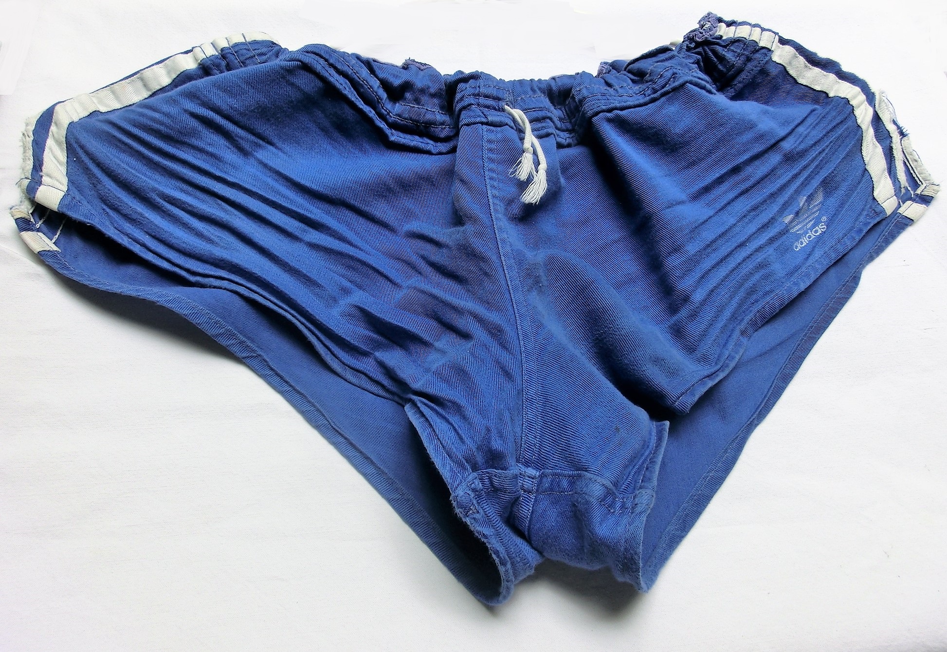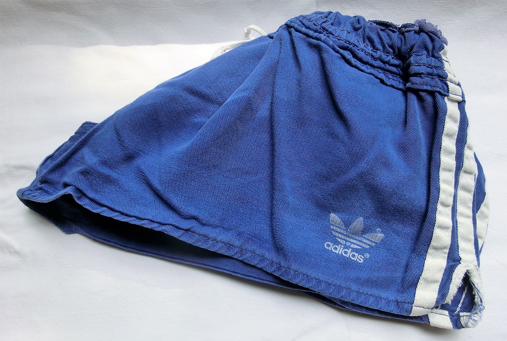 " Blaue Adidas Baumwoll Turnhose - weichgewaschen & gekürzt "