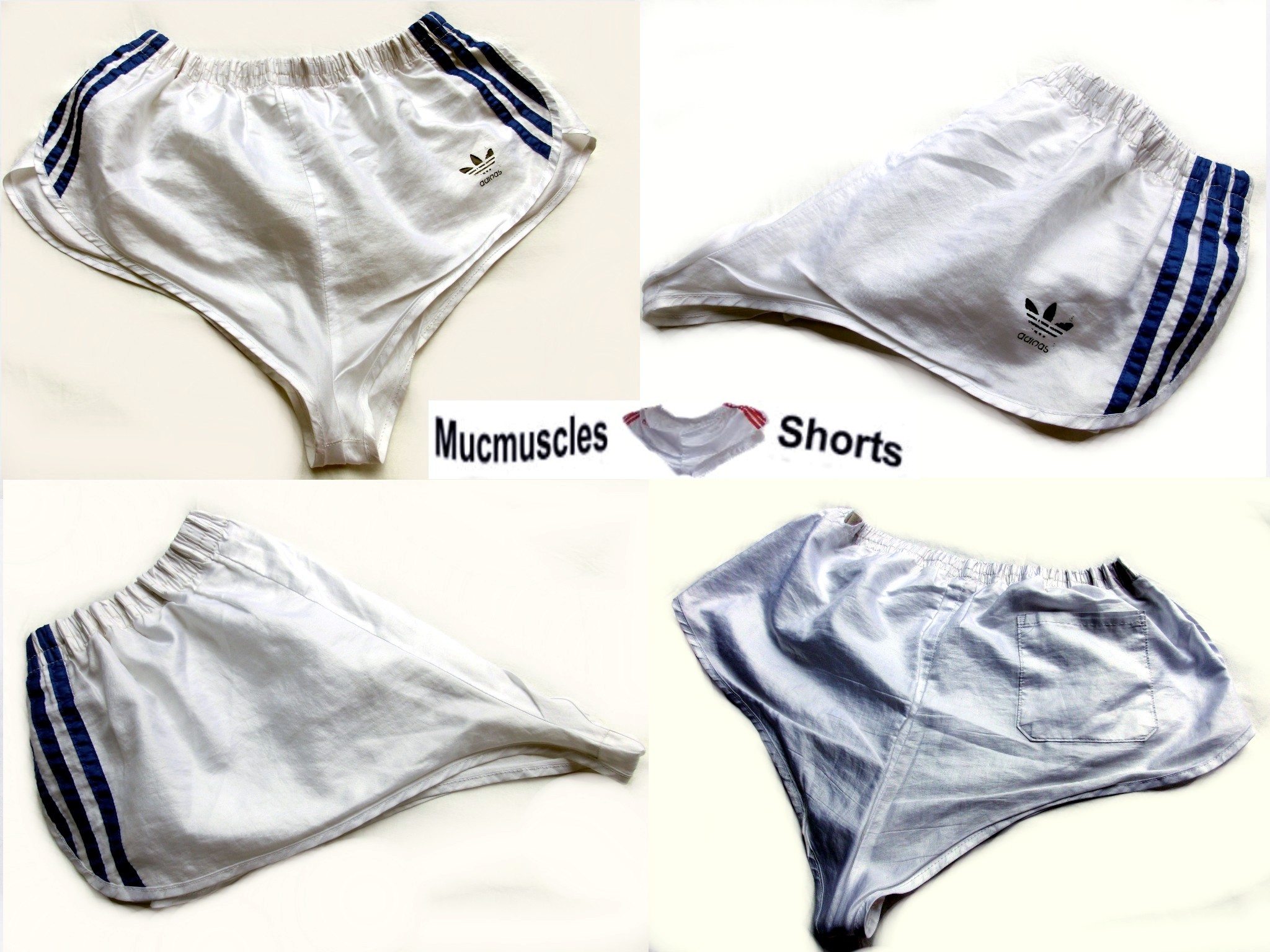 ::: Mucmuscle Auctions presents ::: Turnhosen - Sprintershorts - Sprinter - Running Shorts - Sporthosen - Nylon Shorts - sexy Gay Shorts - Glanzshorts " Weiß-blaue Adidas Super Sprinter - Racer Shorts "