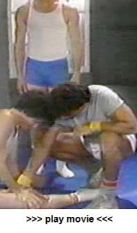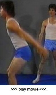 Erotic moves in skimpy blue nylon shorties make their gymnast coach horny