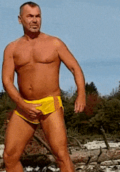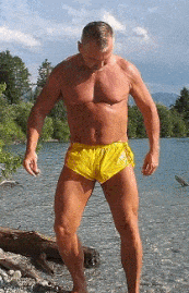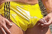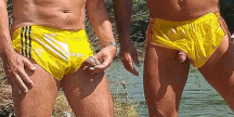 Posing & Suck Session at the riverbank of Isar in yellow Sprinter Shorties