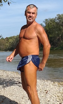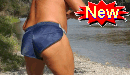 Outdoor Jerking Session in my skimpy darkblue Sprinter Shorties