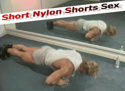 .......Hard workout in skimpy green nylon shorties ... 70s style