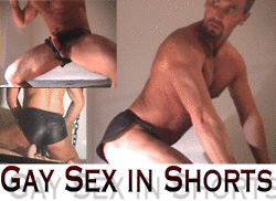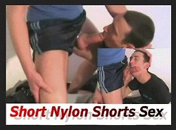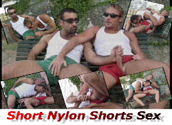 ..............Threeway action in skimpy Sprinter Shorts - double suck