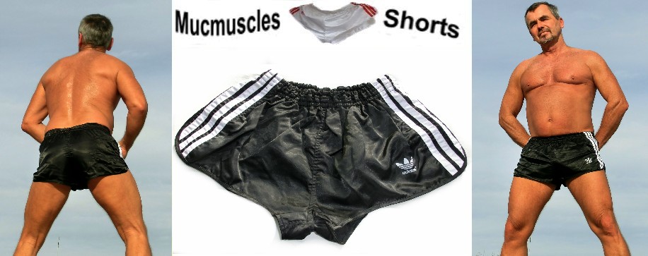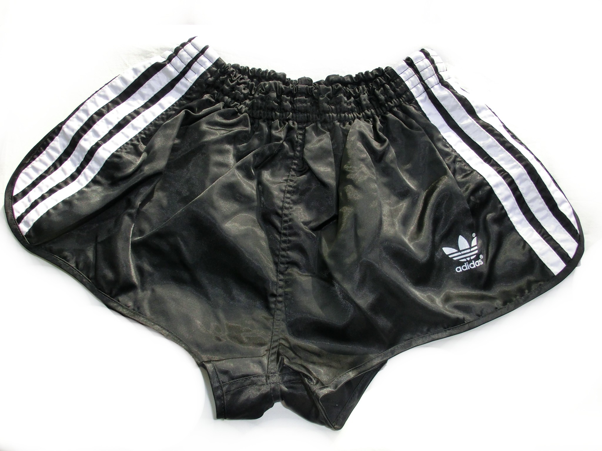 ::: Mucmuscle Auctions presents ::: Turnhosen - Sprintershorts - Sprinter - Running Shorts - Sporthosen - Nylon Shorts - sexy Gay Shorts - Glanzshorts " Schwarz-weiße Adidas GlanzSprinter Shorts im 80er Stil "