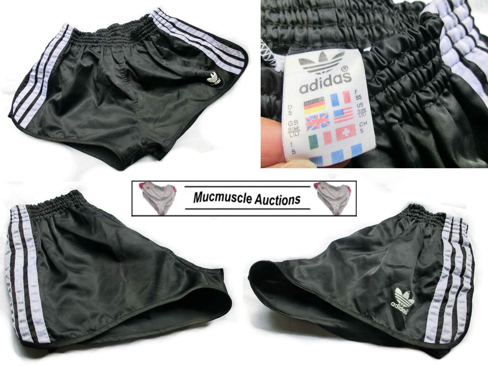 ::: Mucmuscle Auctions presents ::: Turnhosen - Sprintershorts - Sprinter - Running Shorts - Sporthosen - Nylon Shorts - sexy Gay Shorts - Glanzshorts " Schwarze Adidas GlanzSprinter Shorts - 80er Vintage "