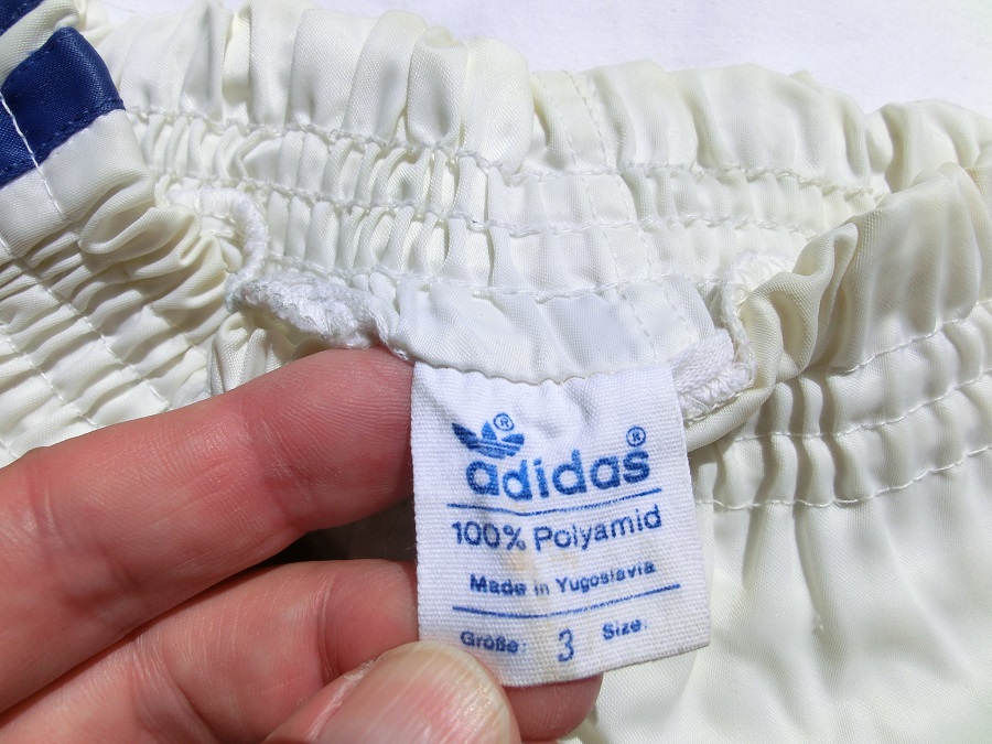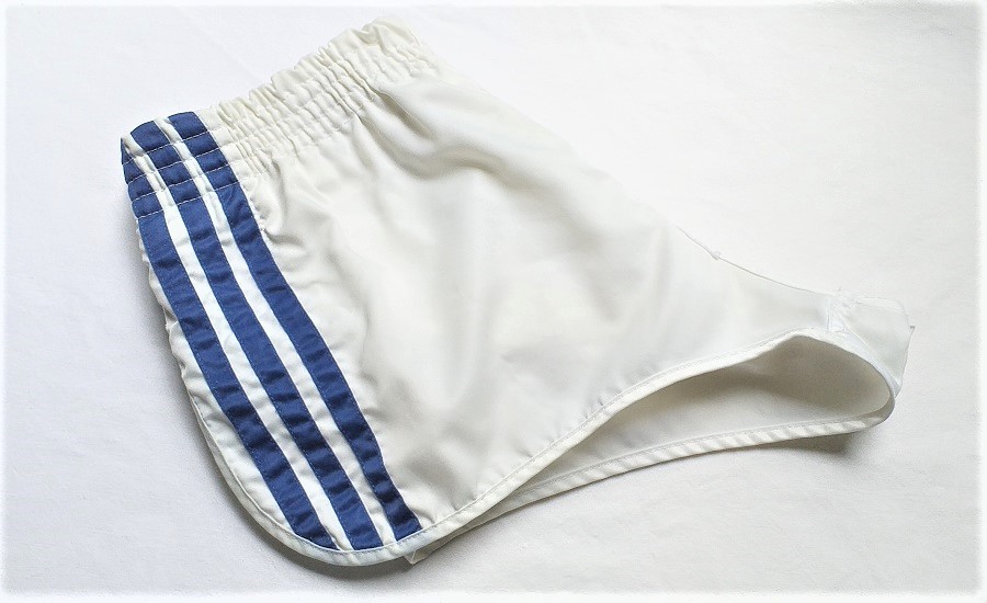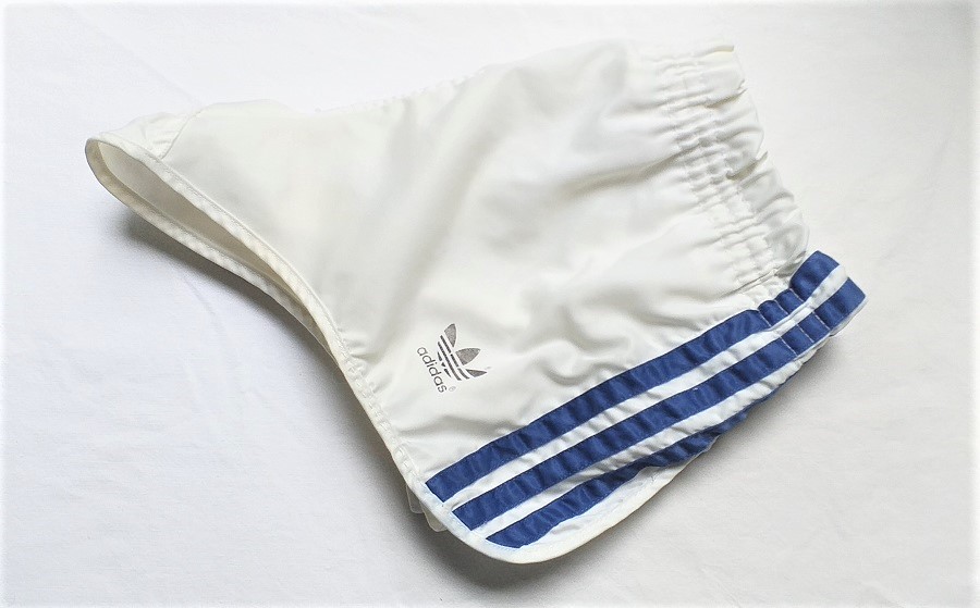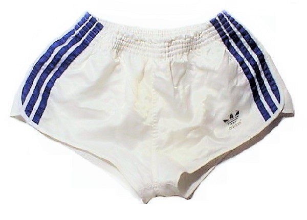 Weiße Adidas GlanzSprinter Shorts im 80er Stil
