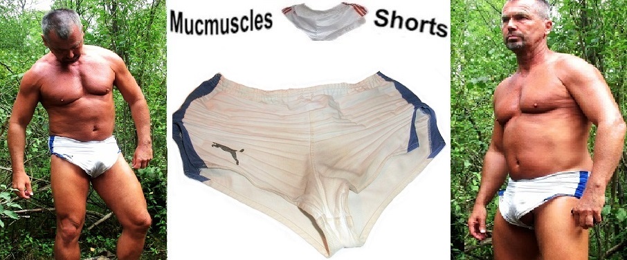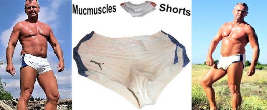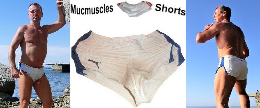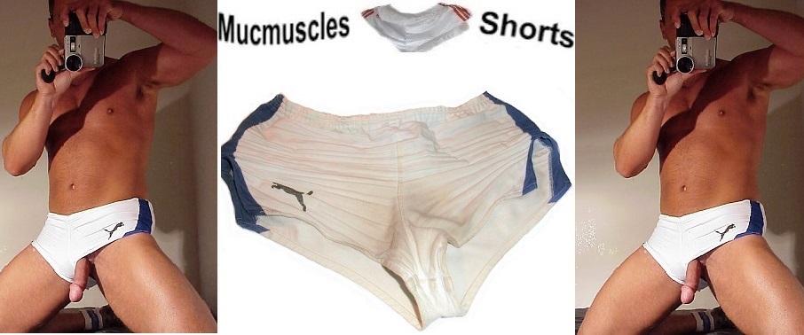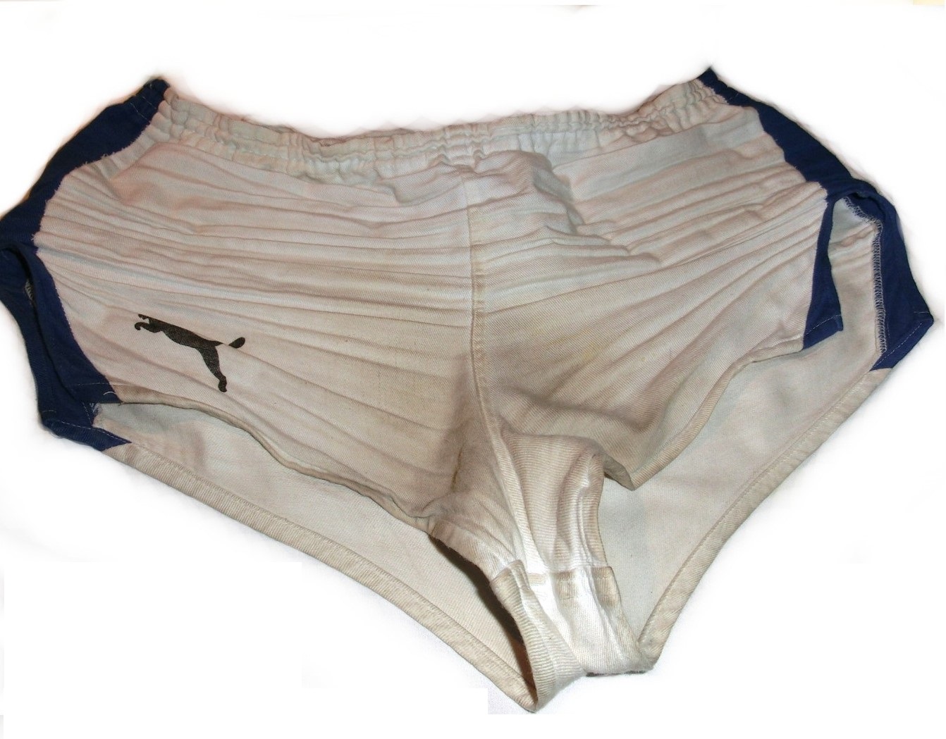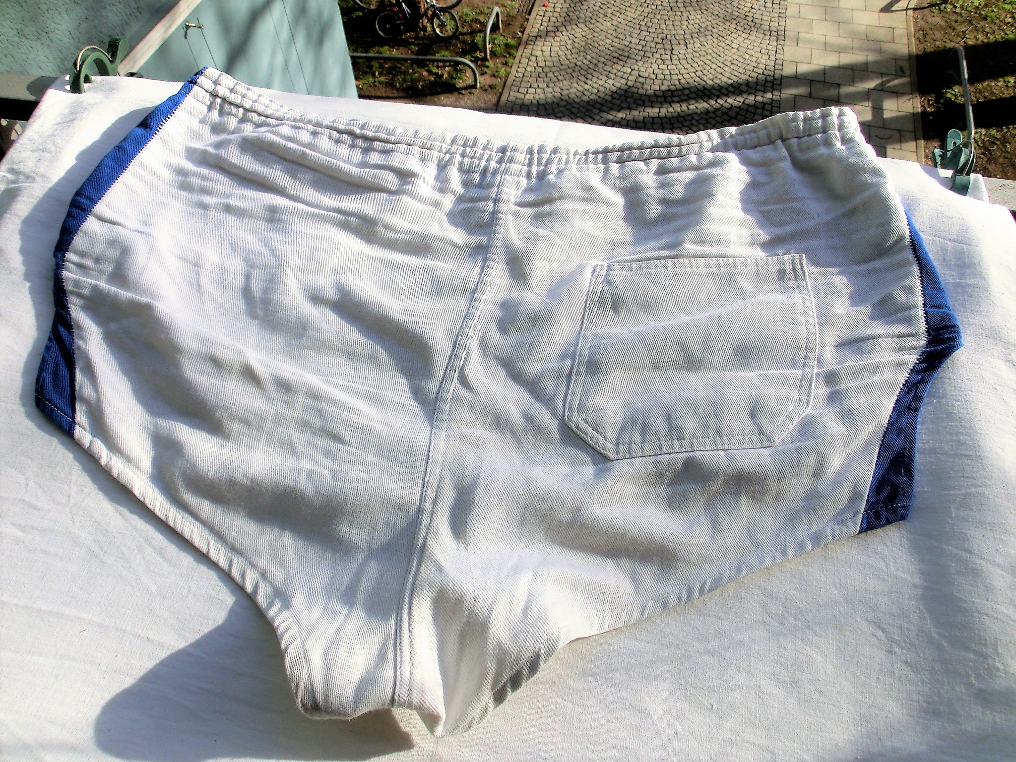 Geile abgefuckte Puma Baumwoll Turnhose - weiß mit blauen Seitenkeilen