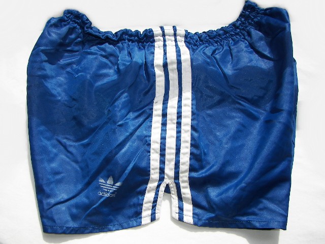 " Orig. 70/80 er Adidas Glanz Shorts blau - weiß "