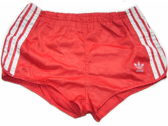 " Rote Seitenschlitz Adidas Glanz Sprinter Shorts im 80 er Stil "