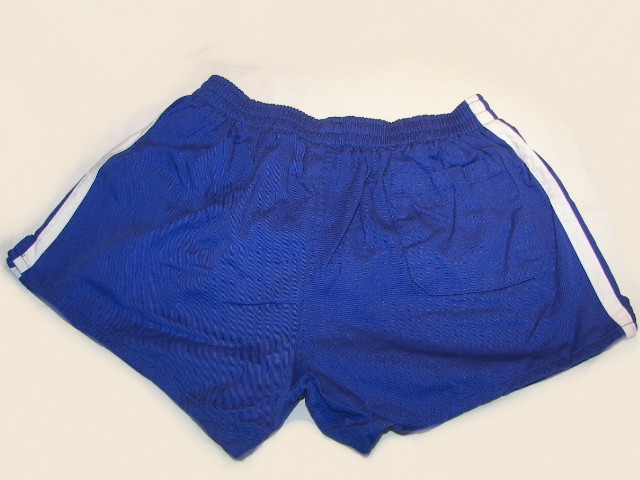 " VEB Baumwoll Shorts / Turnhose blau-weiß "