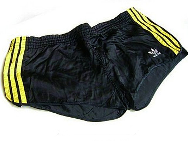 " Schwarze Adidas GlanzSprinter Shorts im 80er Stil "