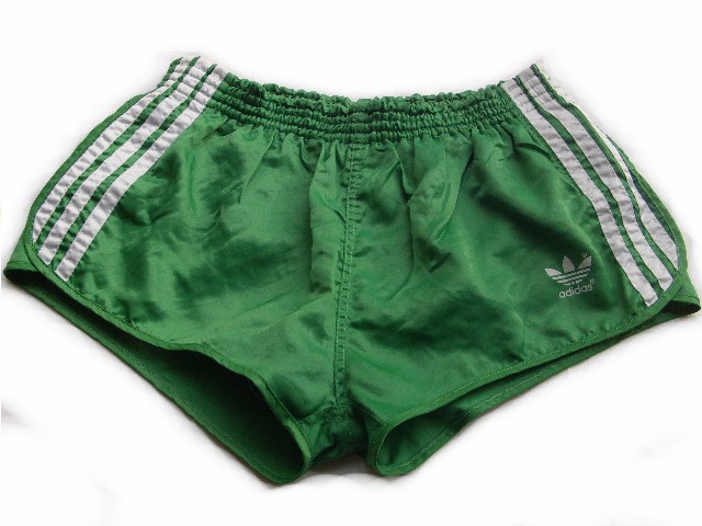 " Grüne Adidas GlanzSprinter Shorts im 80er Stil "