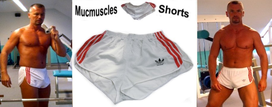 ::: Mucmuscle Auctions presents ::: Turnhosen - Sprintershorts - Sprinter - Running Shorts - Sporthosen - Nylon Shorts - sexy Gay Shorts - Glanzshorts " Weiß-rote Adidas Sprinter "