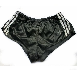 Schwarze Adidas GlanzSprinter Shorts gekürzt Artikelbeschreibung - description Größe: 5 / medium Material: GlanzNylon / glossy nylon ohne Innenslip / without inner liner extrem ausgeschnitten / hi -cut in einwandfreiem Zustand / in great vintage condition Made in Germany by Adidas extrem seltenes Leichtathletic Höschen - one of my Favorites ! rare sports shorts for the 80s ...gays will love it |