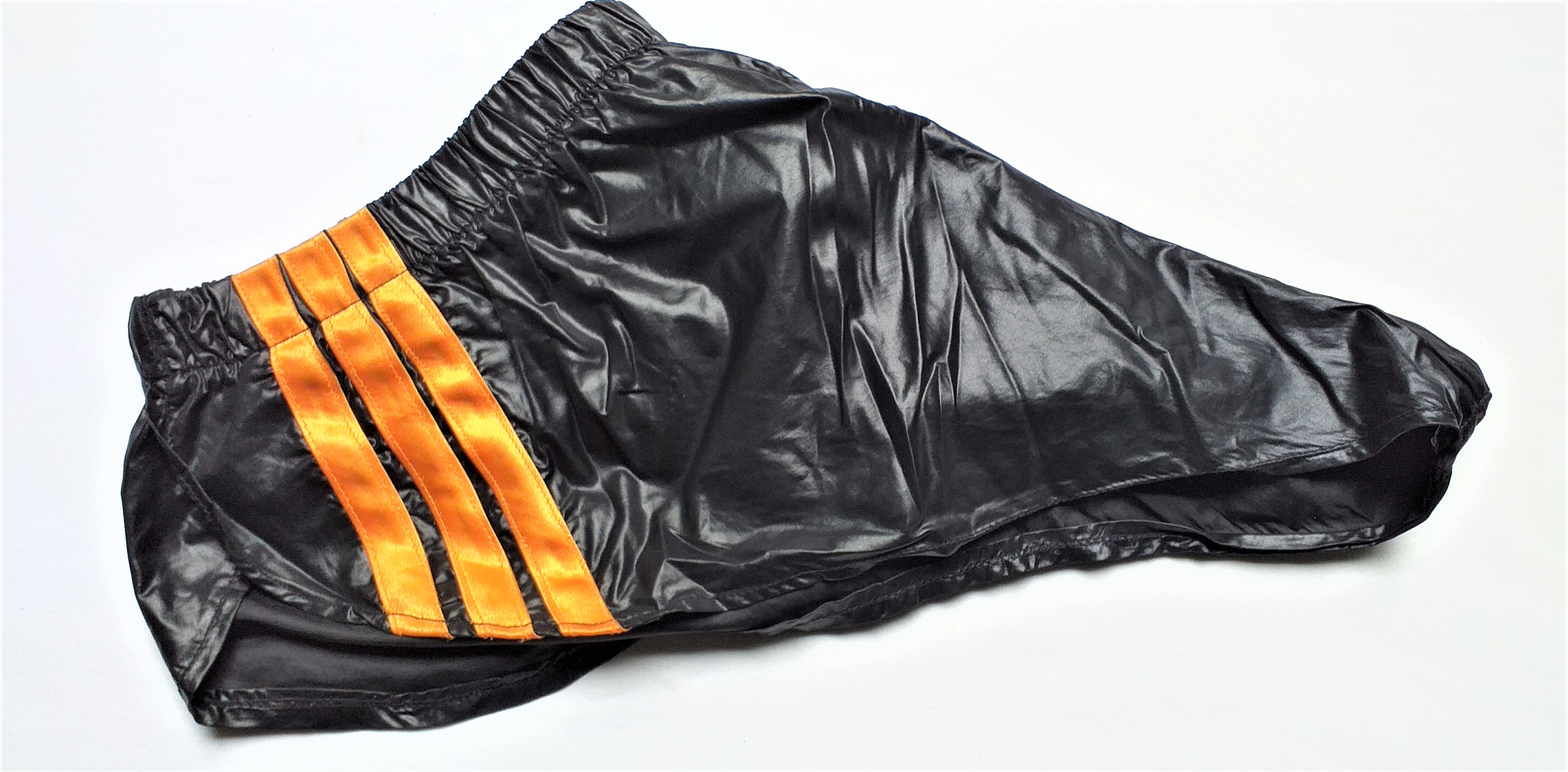 Schwarz/orange Sprinter Shortie from ShinyShortsRyan Diashow presented by http://www.mucmuscle.com/auction Copyright ©2007-2020 Mucmuscle Design All rights reserved