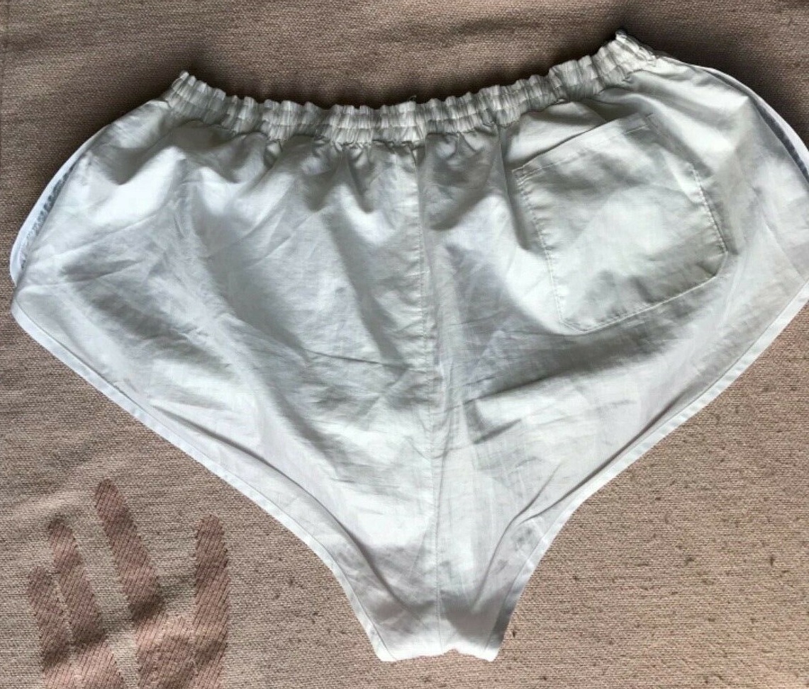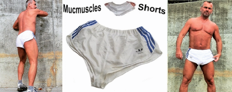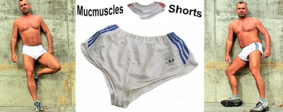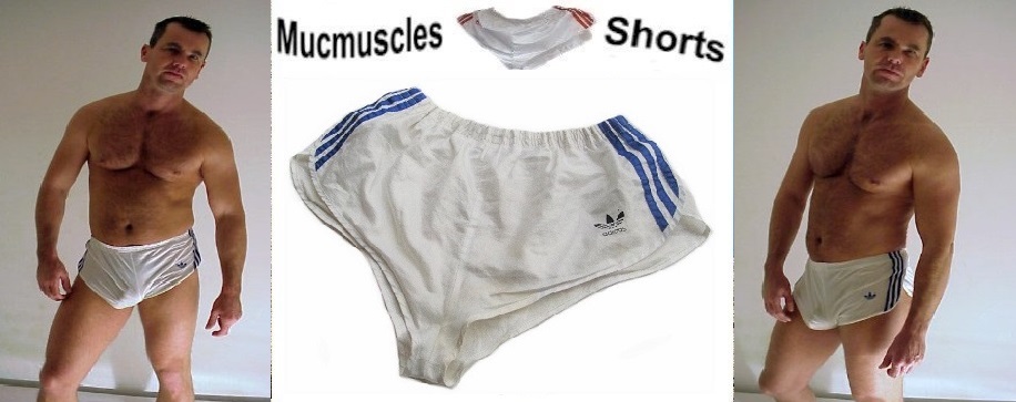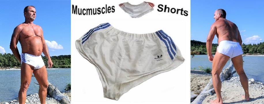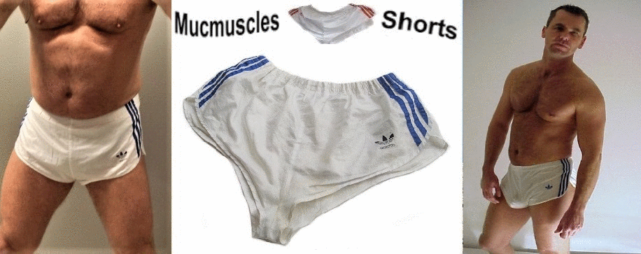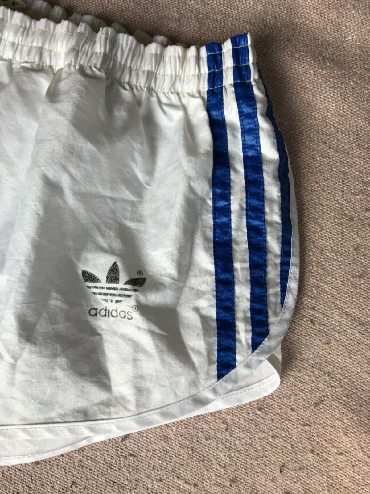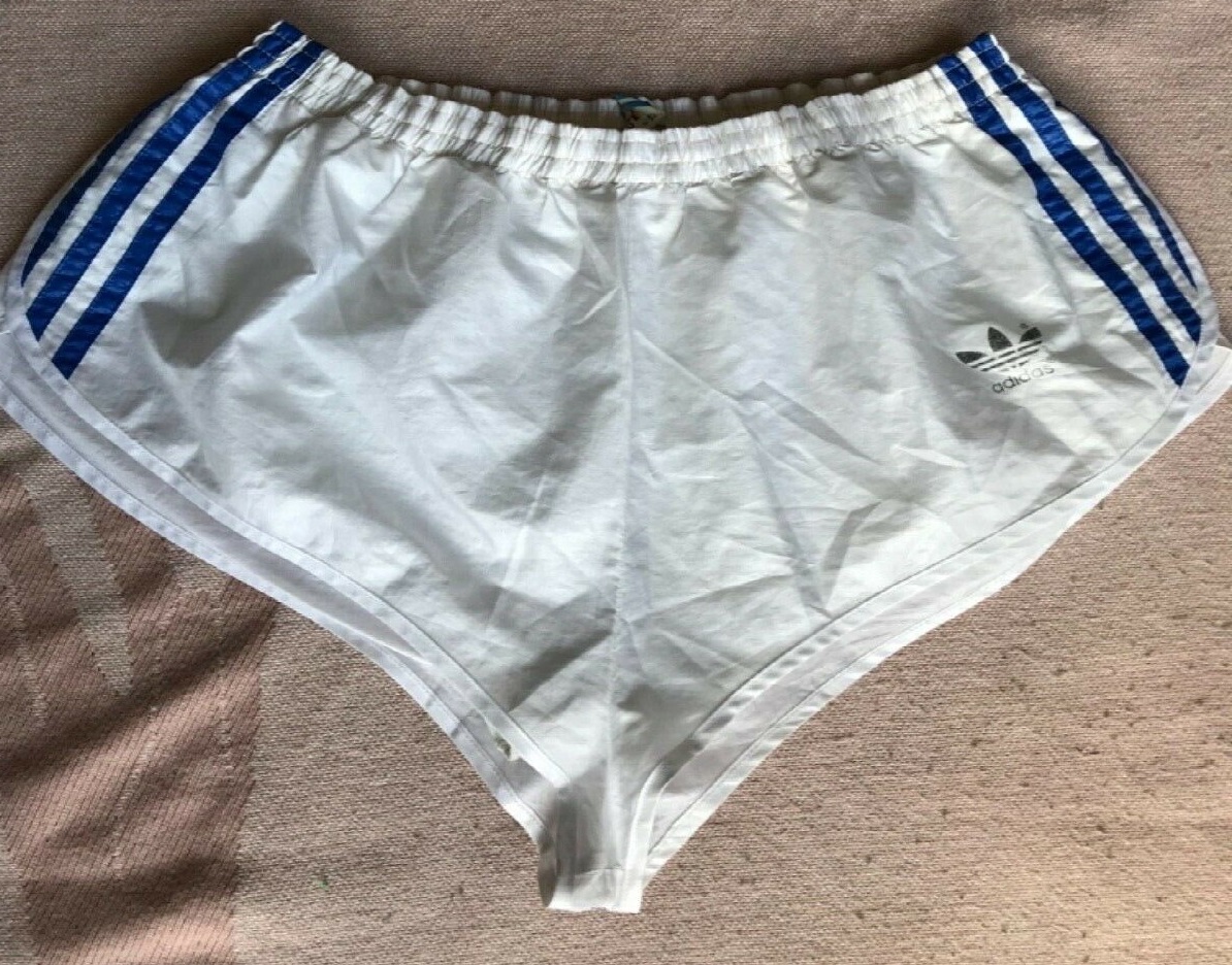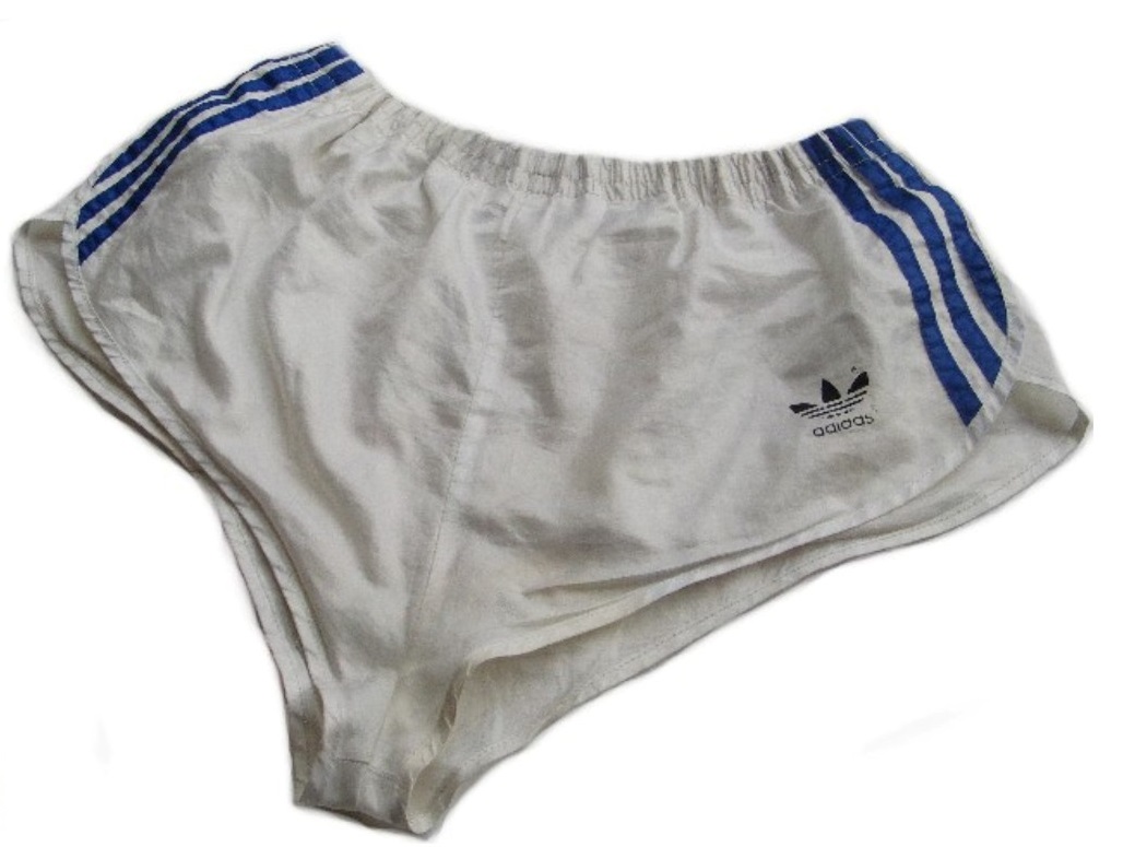 Weiß-blaue Adidas Super Sprinter Racer Shorts presented by http://www.mucmuscle.com/auction Copyright ©2007-2019 Mucmuscle Design All rights reserved