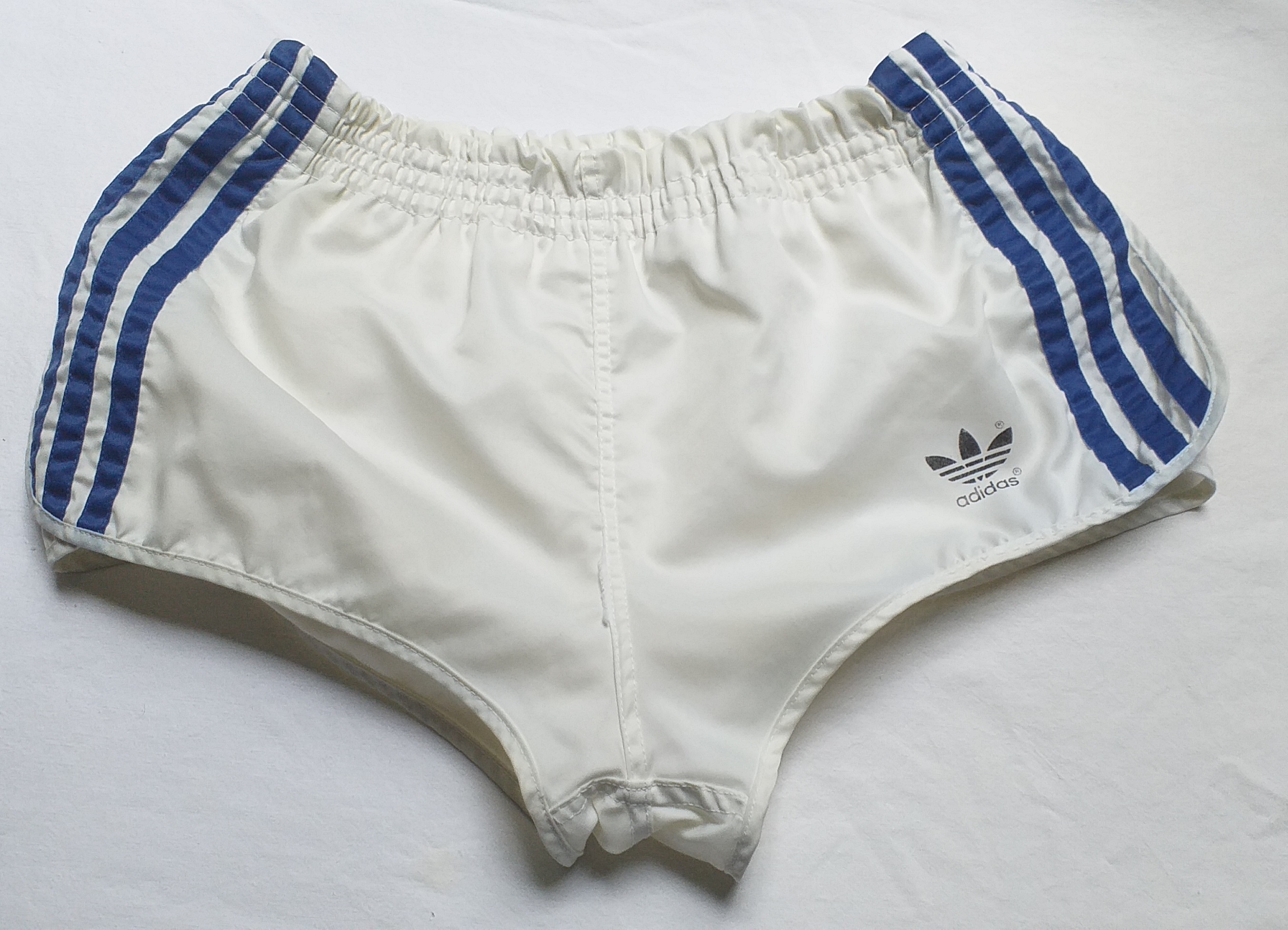 Weiße Adidas GlanzSprinter Shorts im 80er Stil