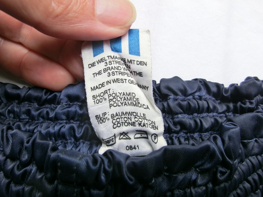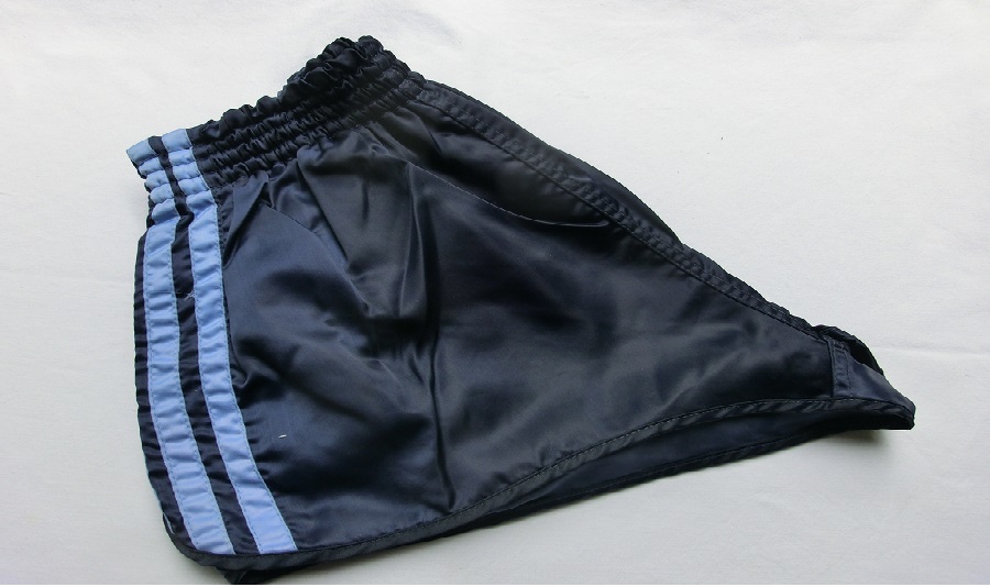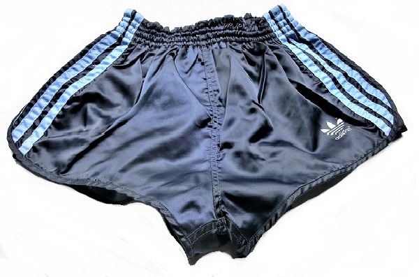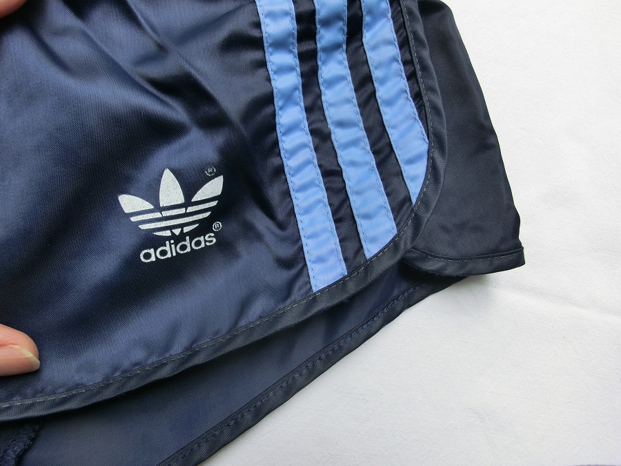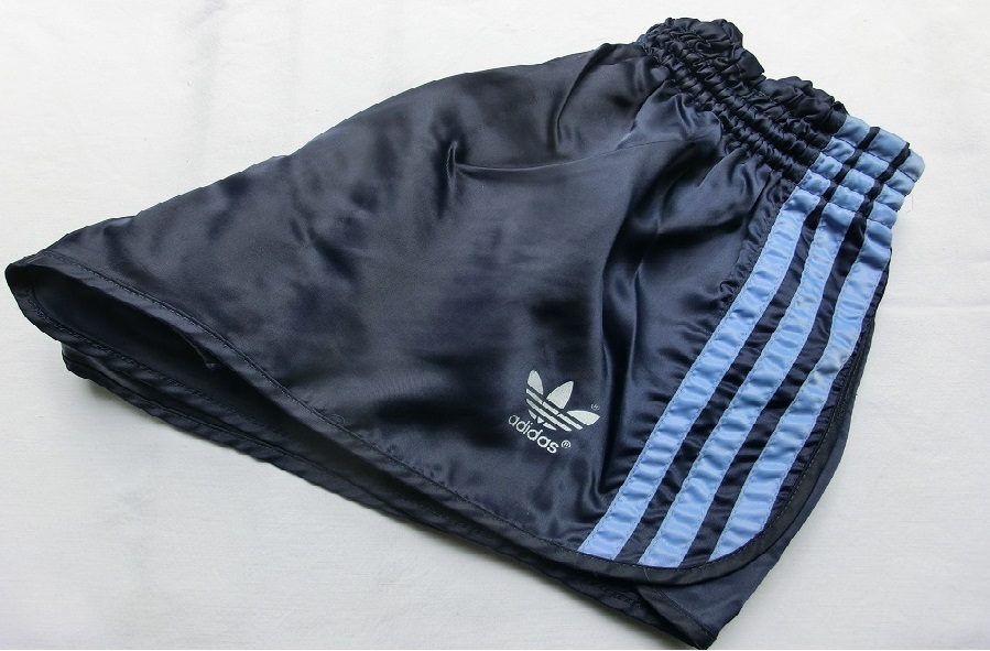 Dunkelblaue Adidas GlanzSprinter Shorts im 80er Stil