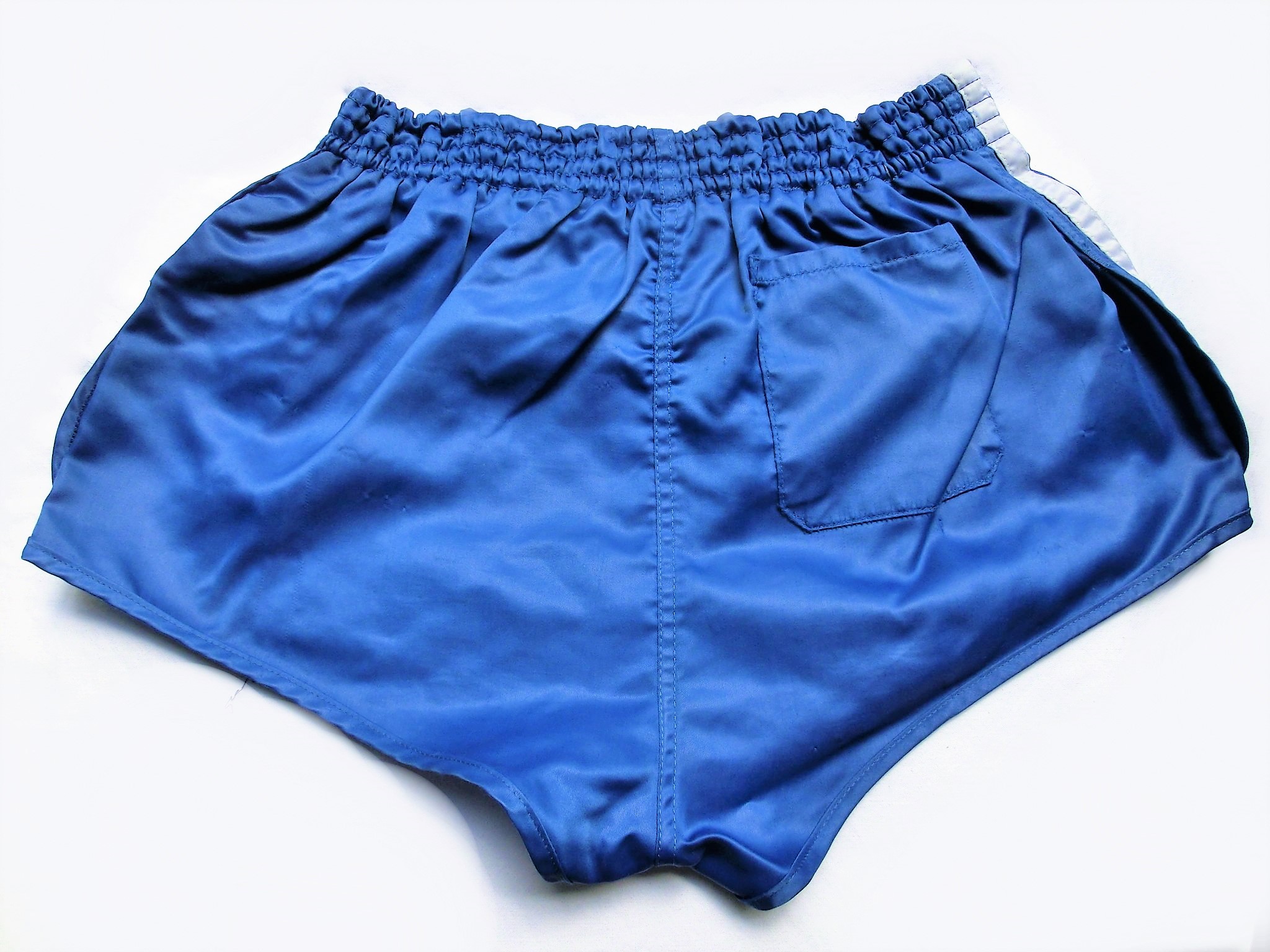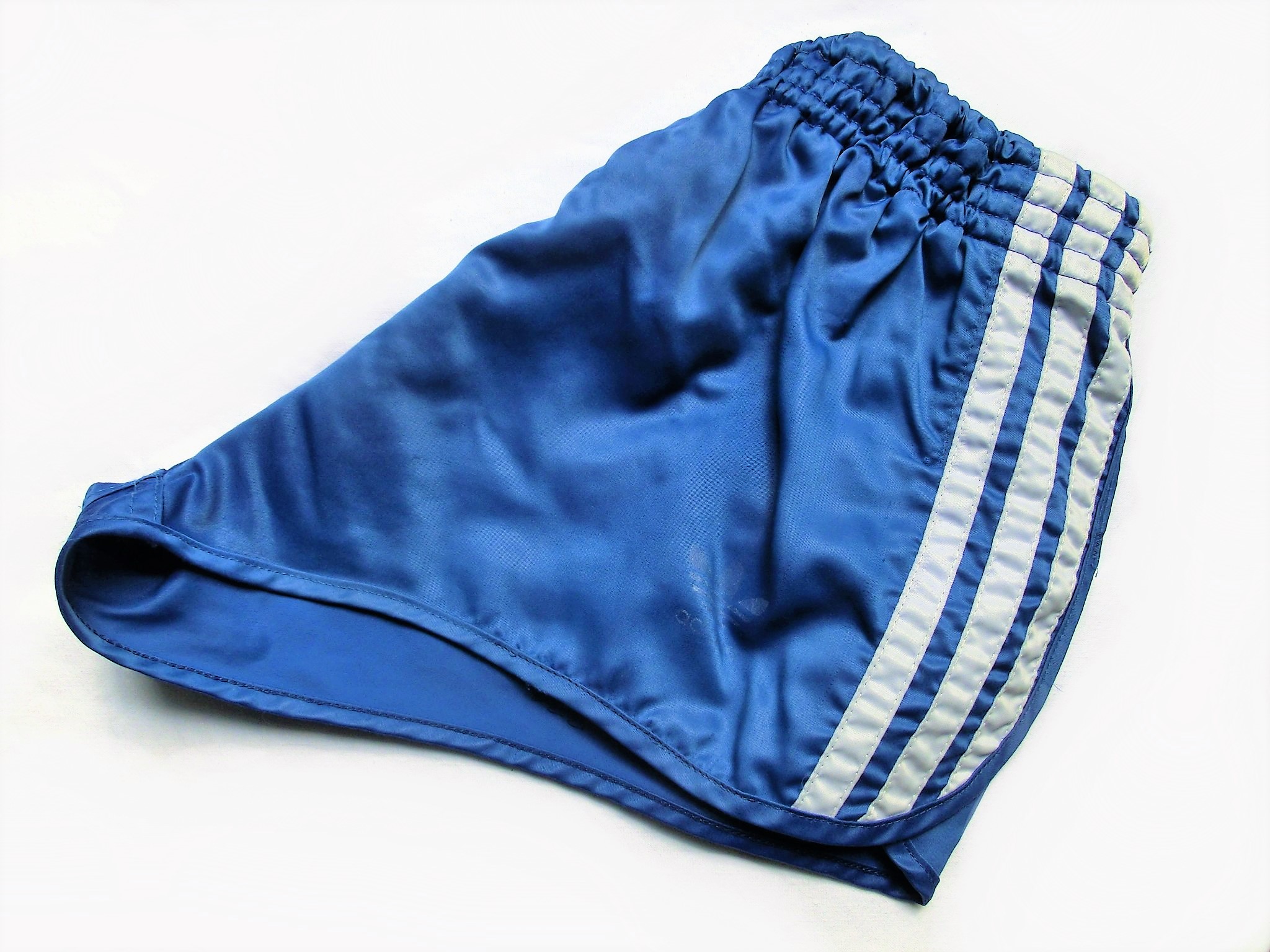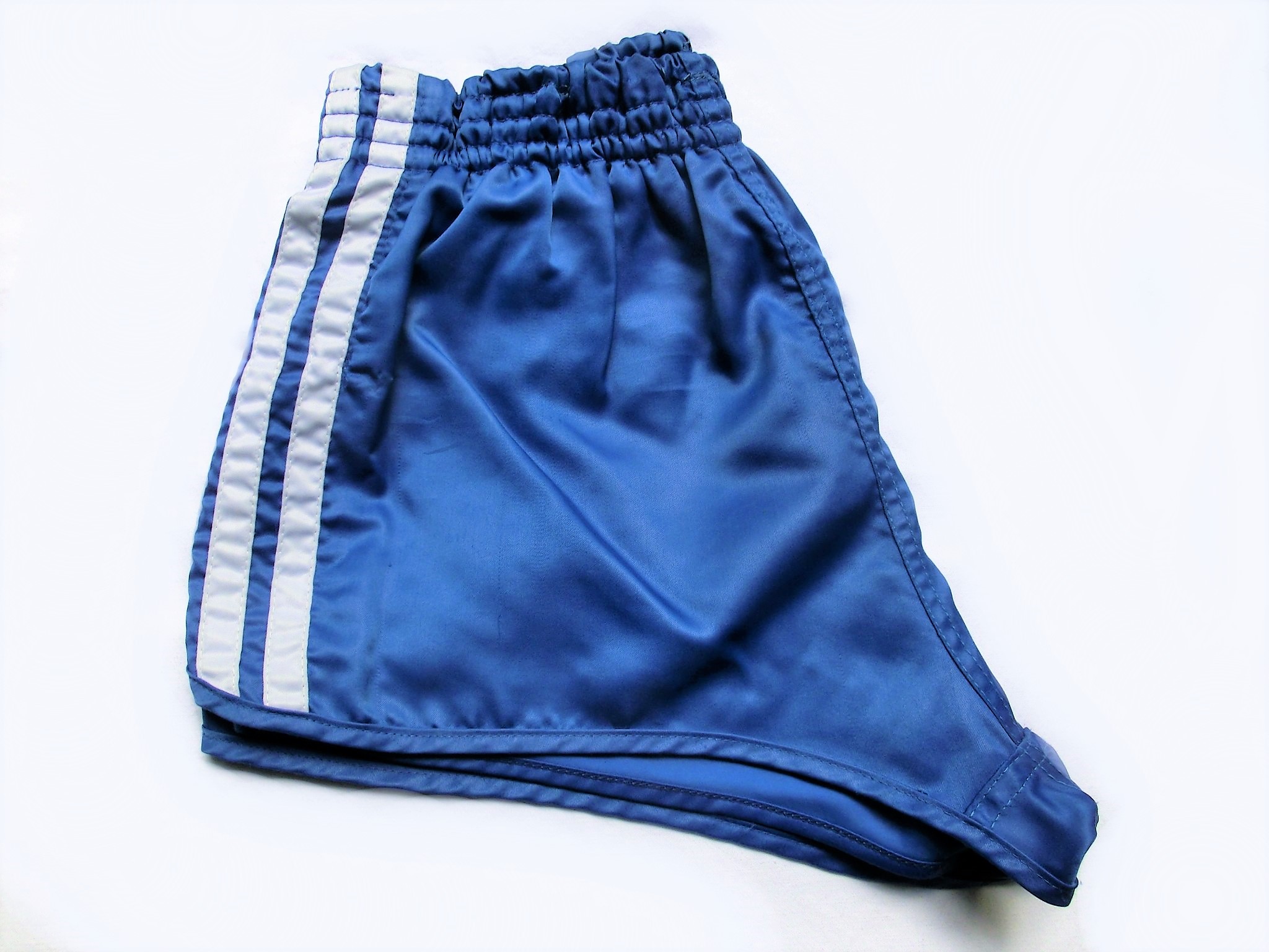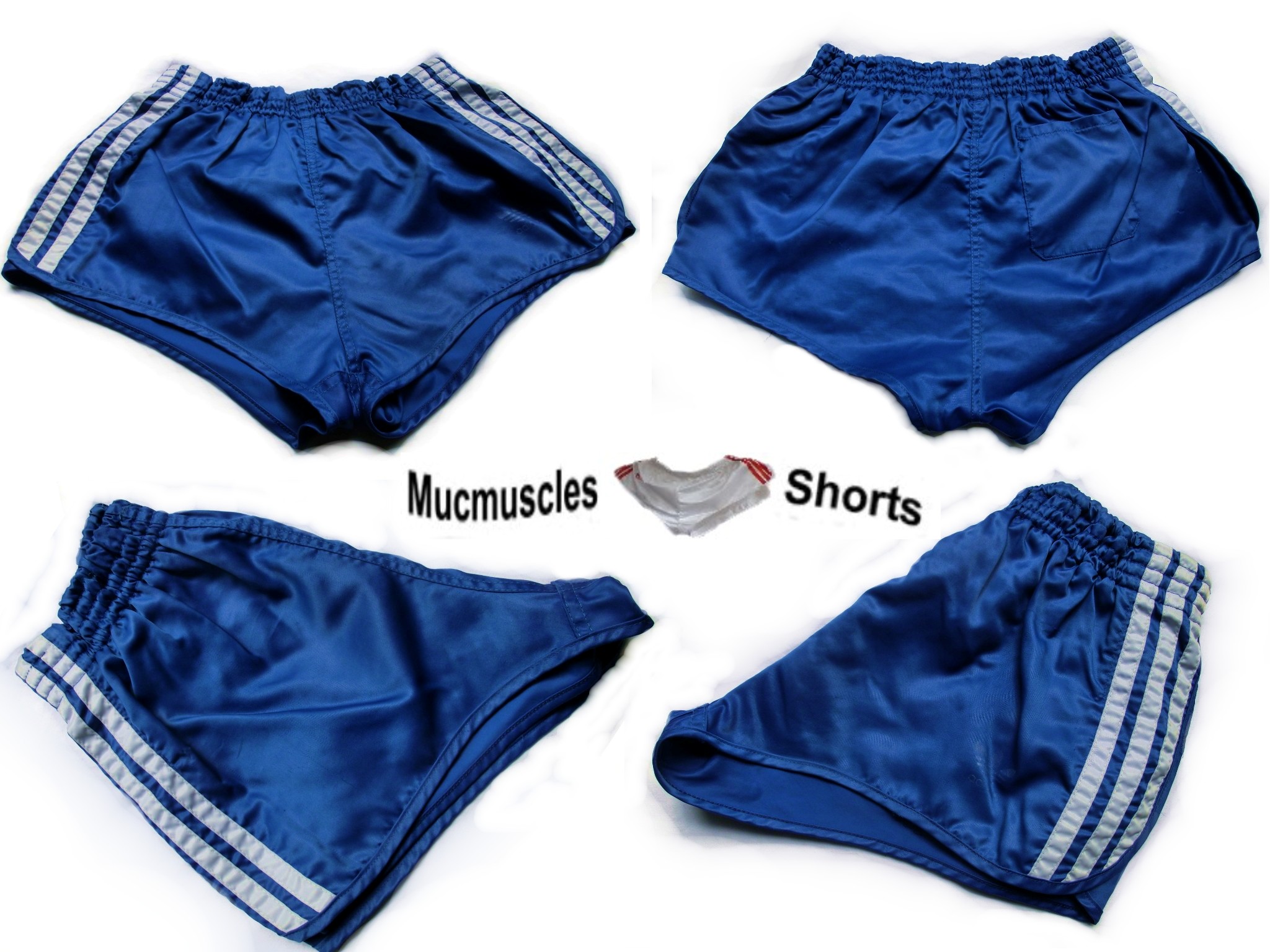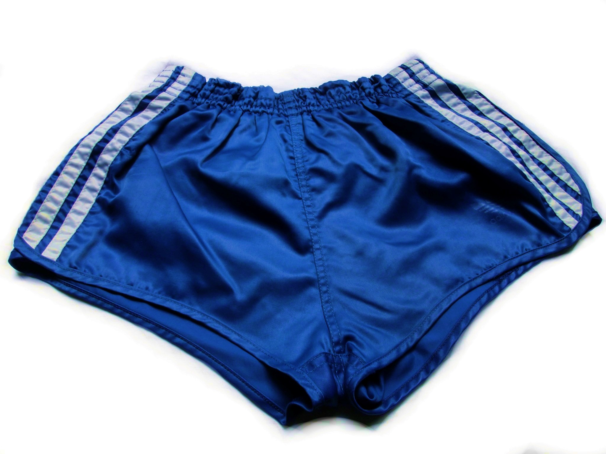 Blaue Adidas GlanzSprinter Shorts im 80er Stil