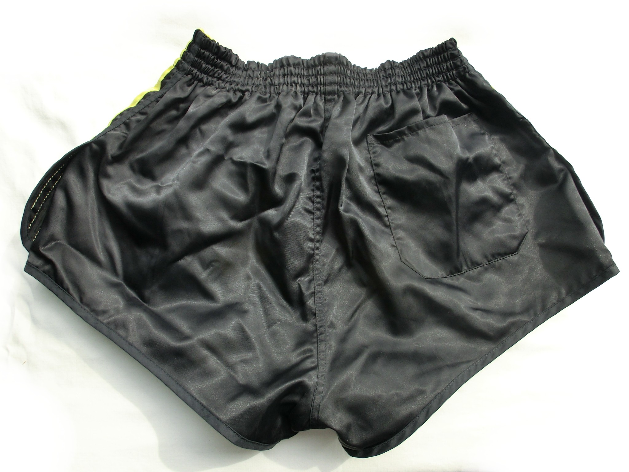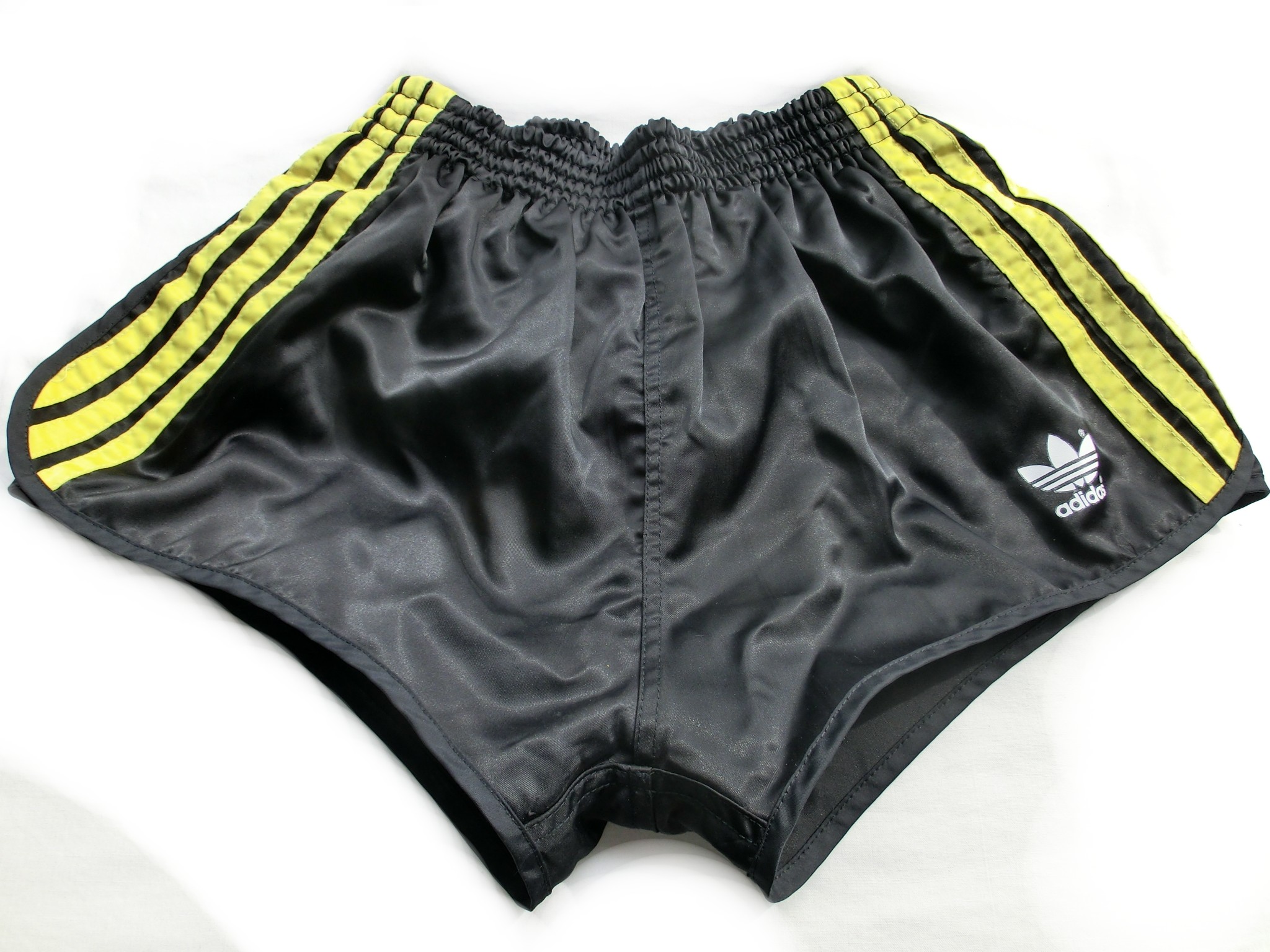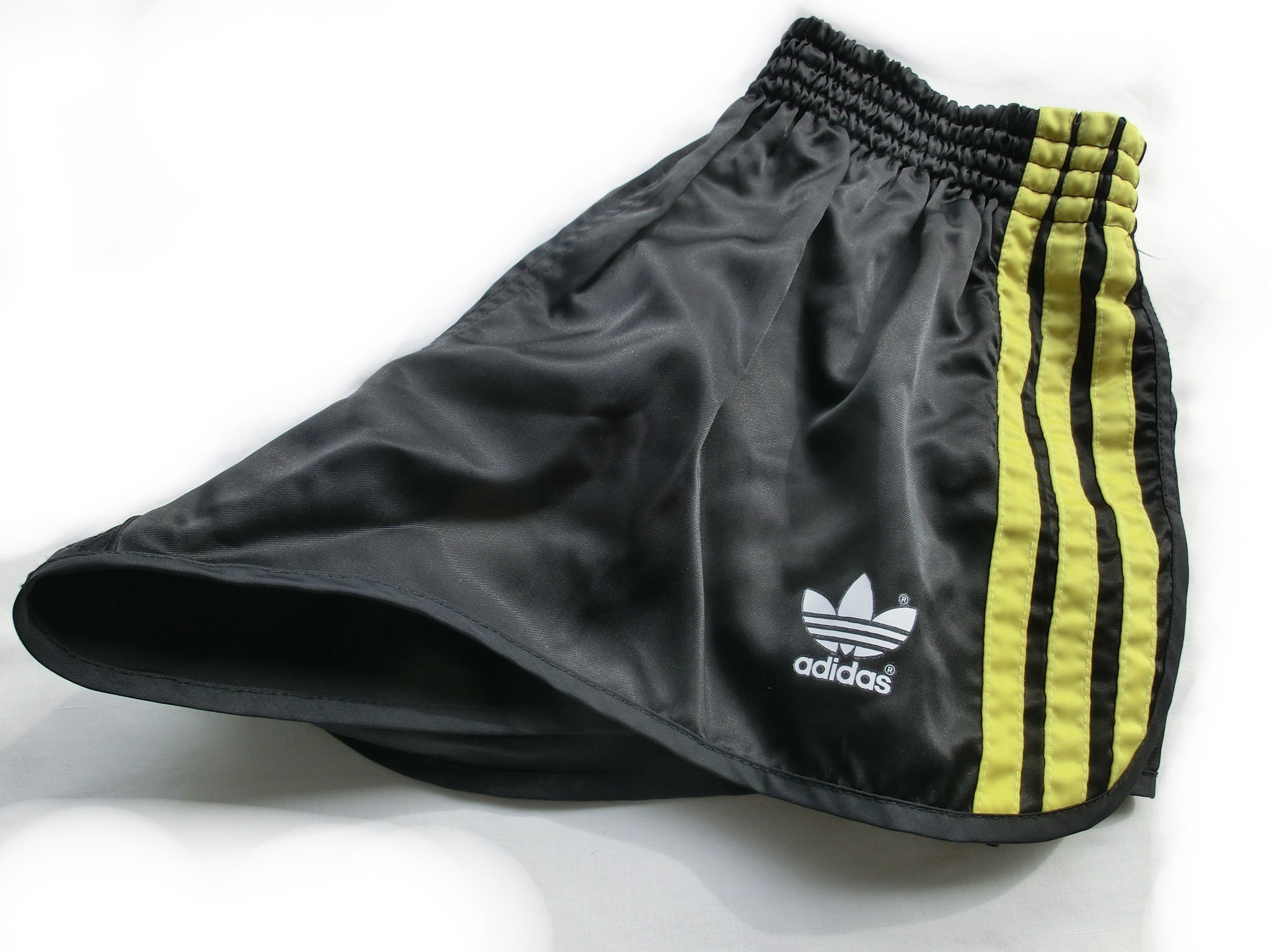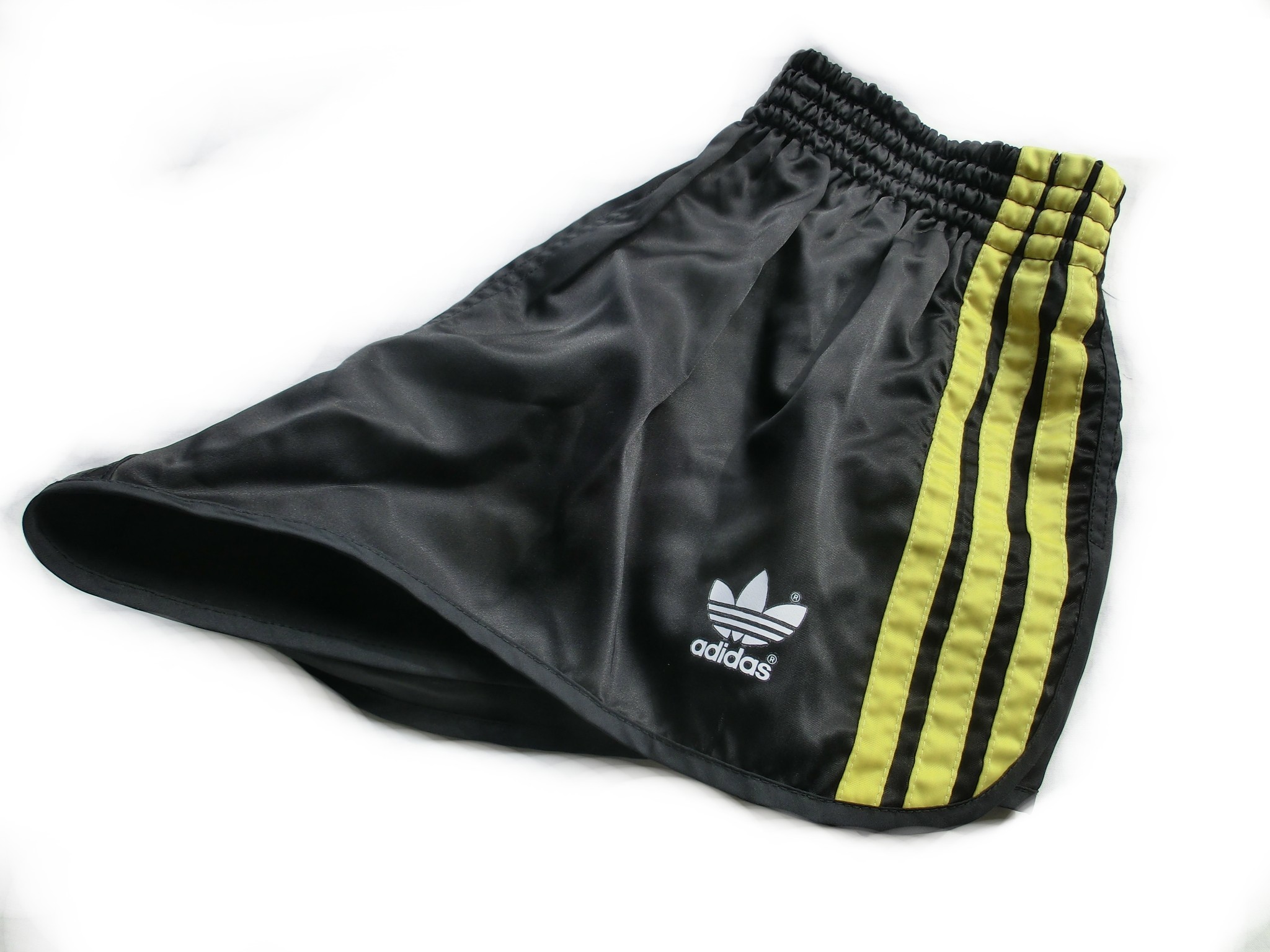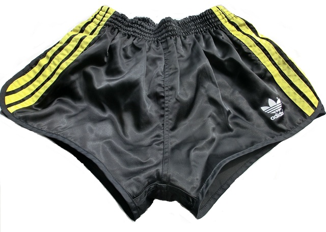 Schwarze Adidas GlanzSprinter Shorts mit gelben Seitenstreifen