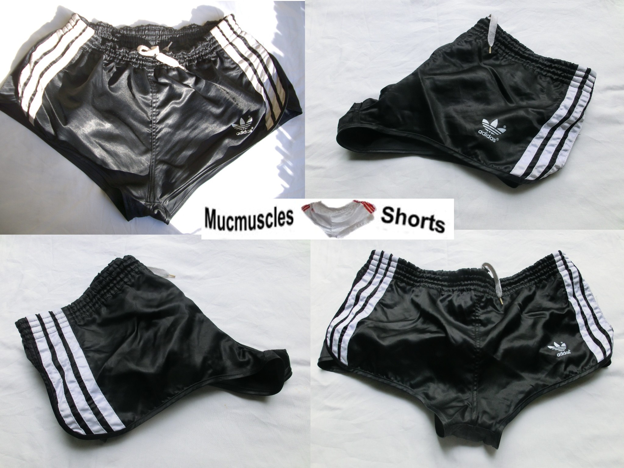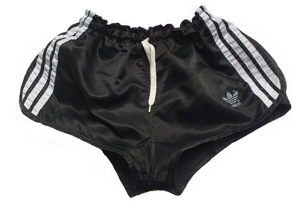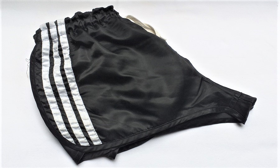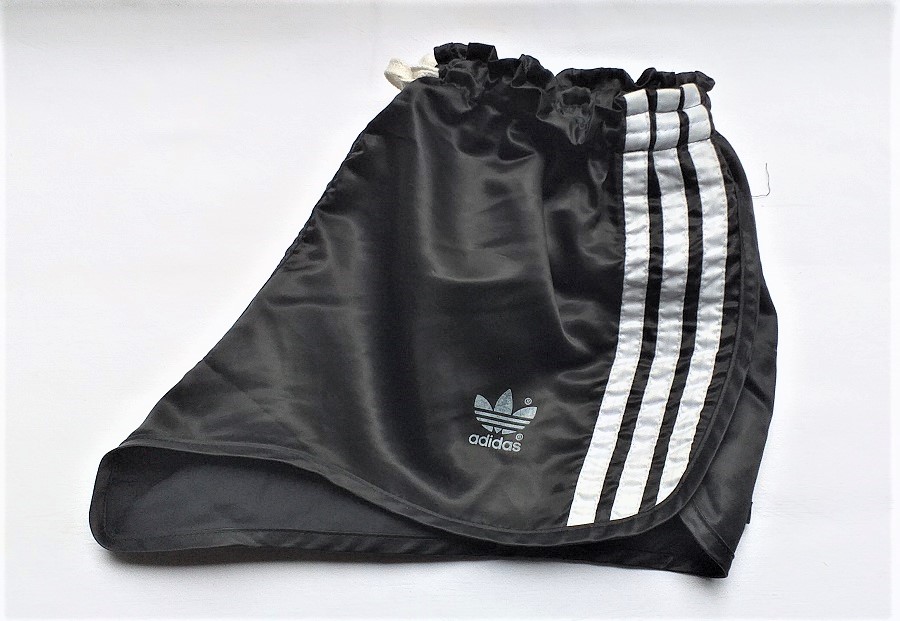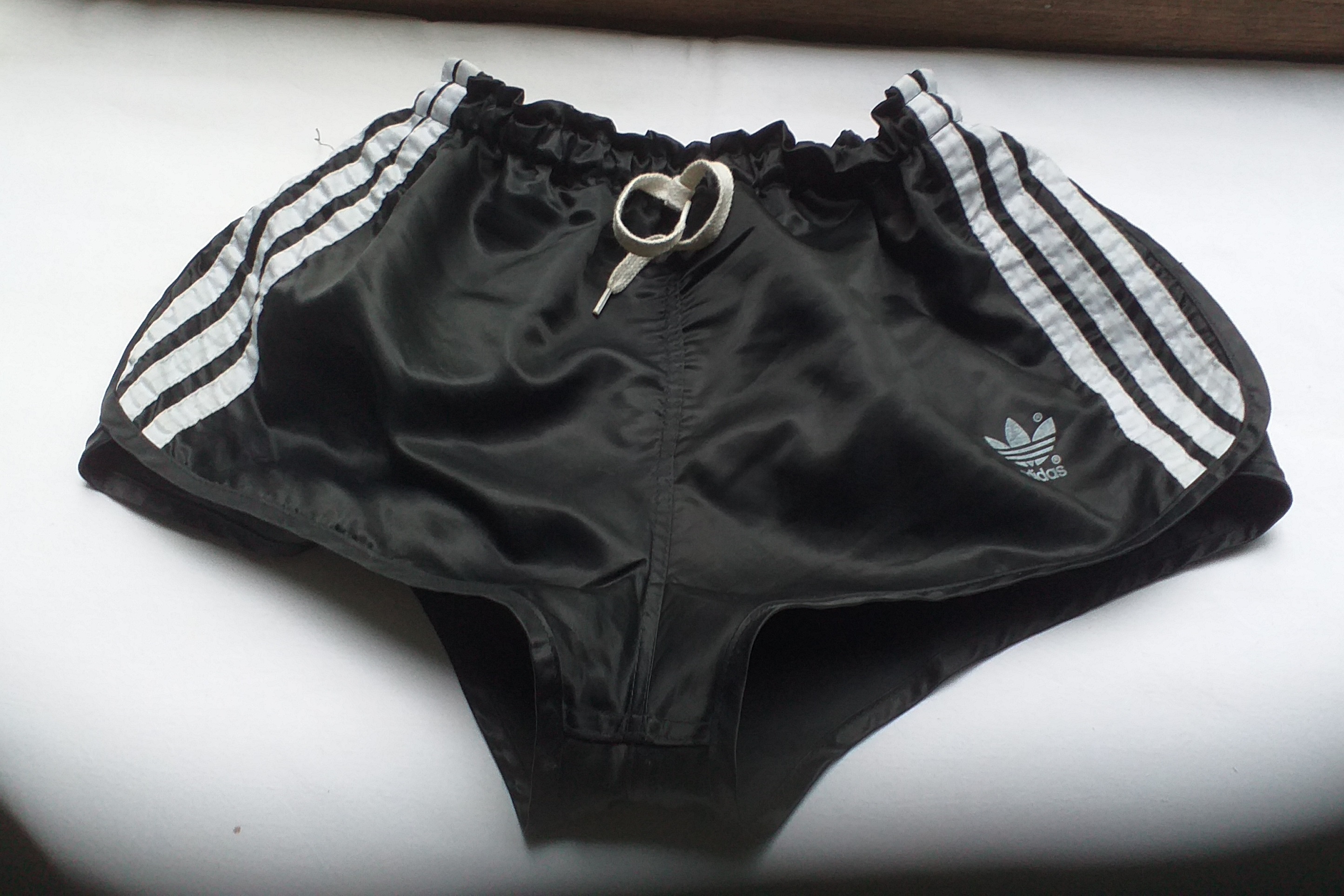 Schwarze Adidas GlanzSprinter Shorts mit weißer Kordel