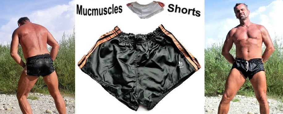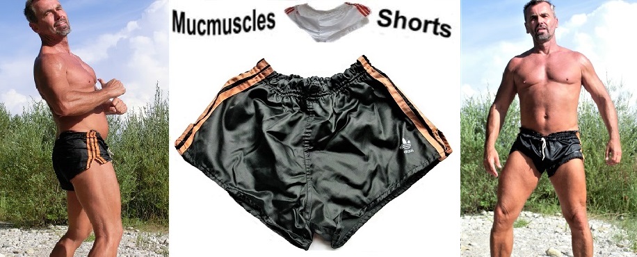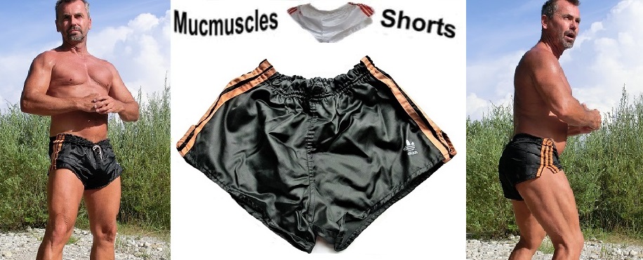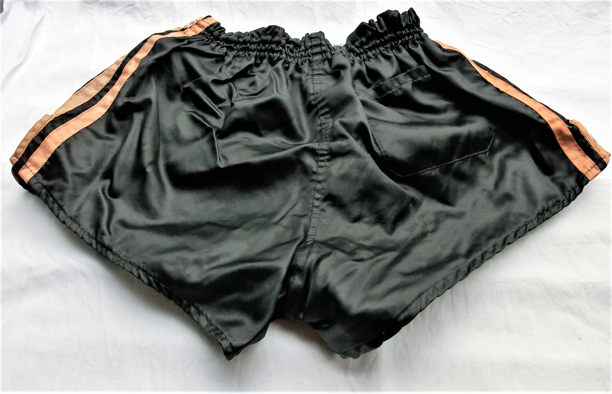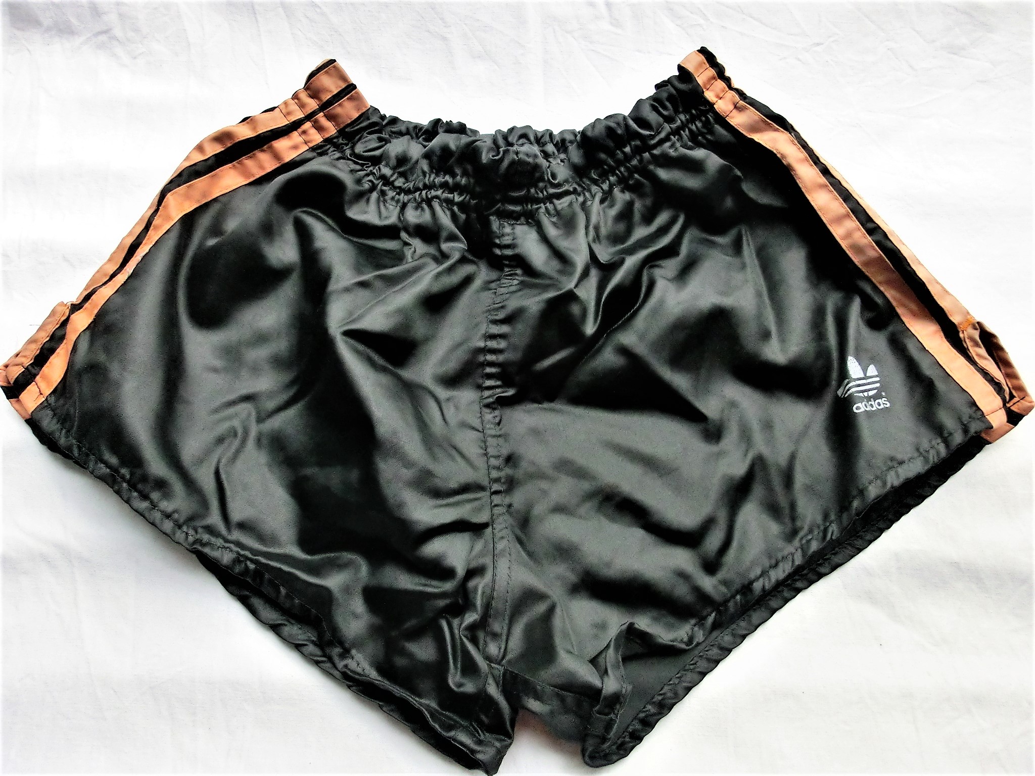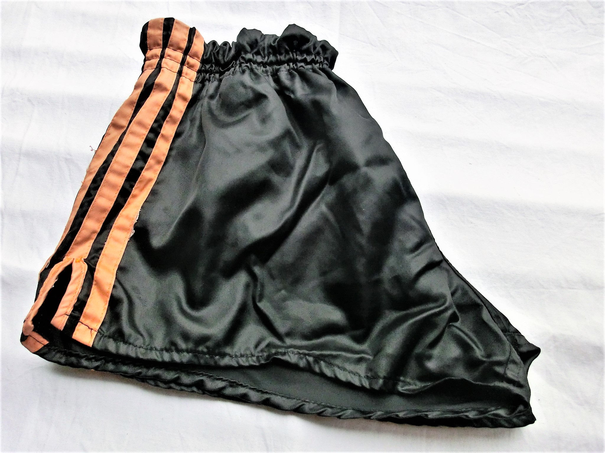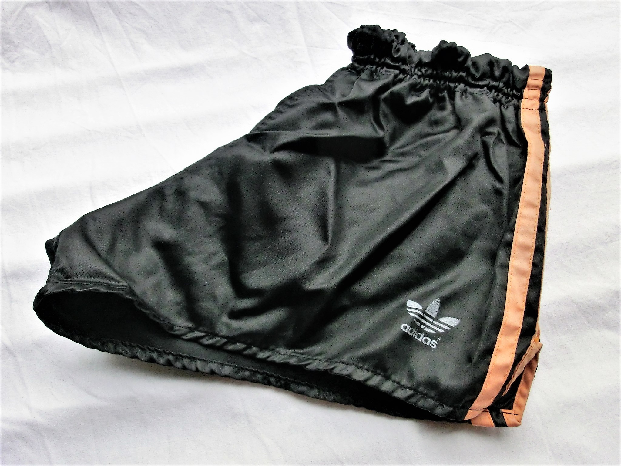 Schwarze Adidas Beckenbauer Shorts mit orangen Seitenstreifen