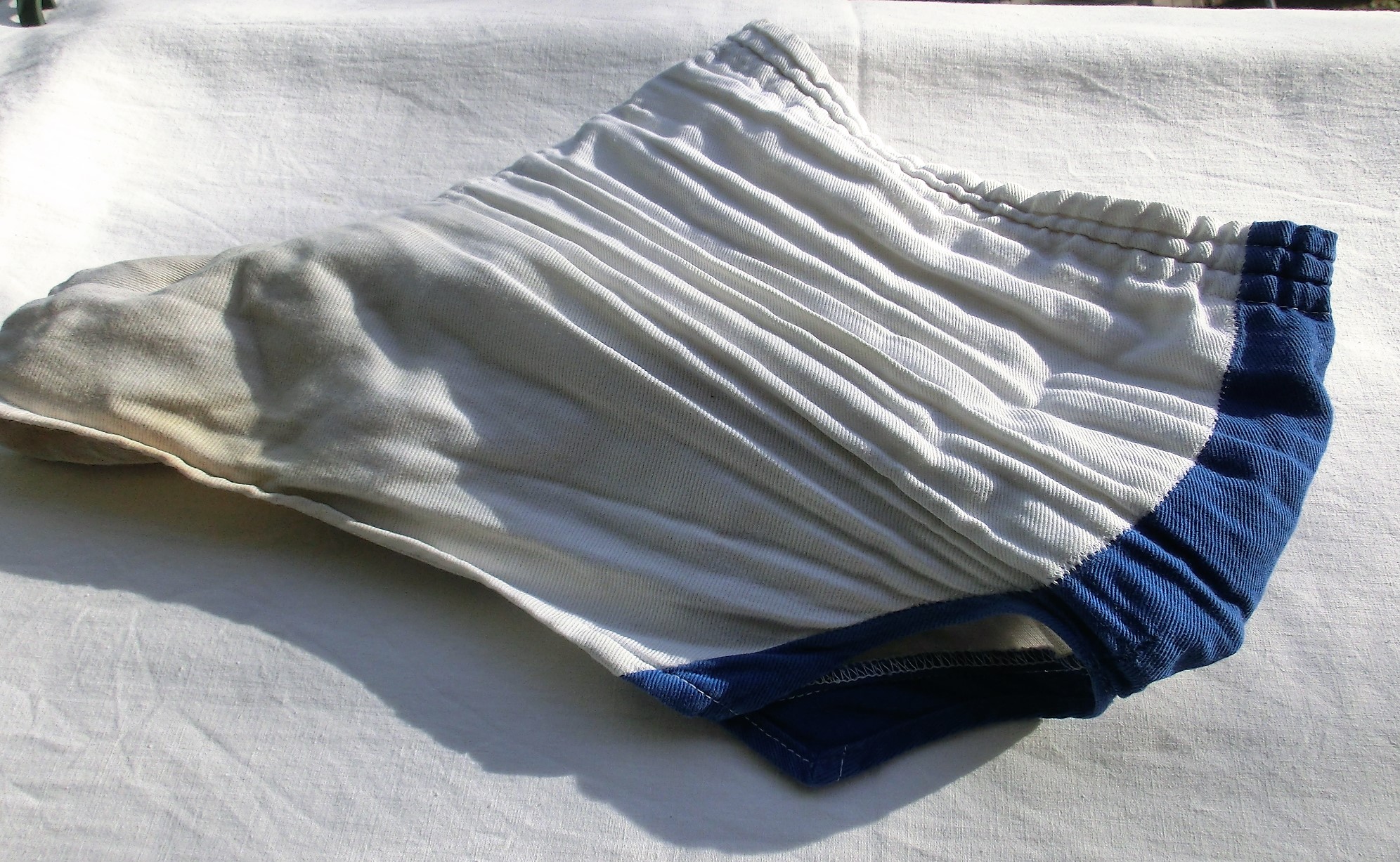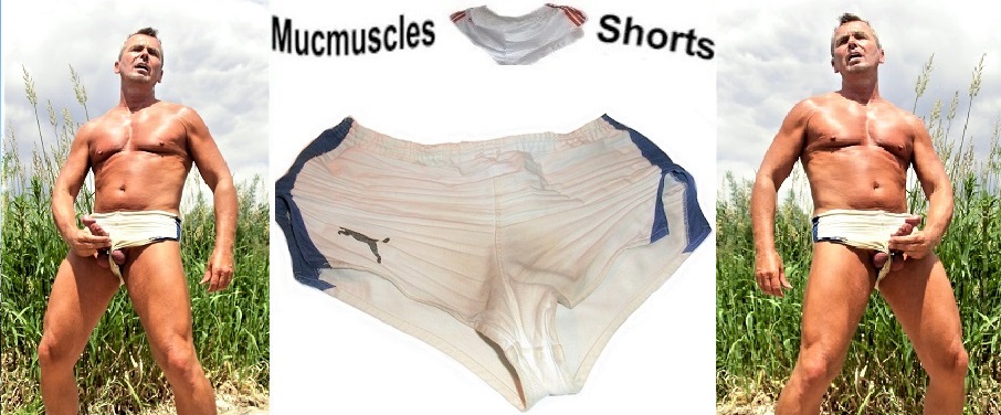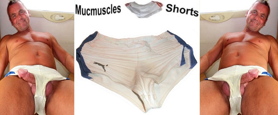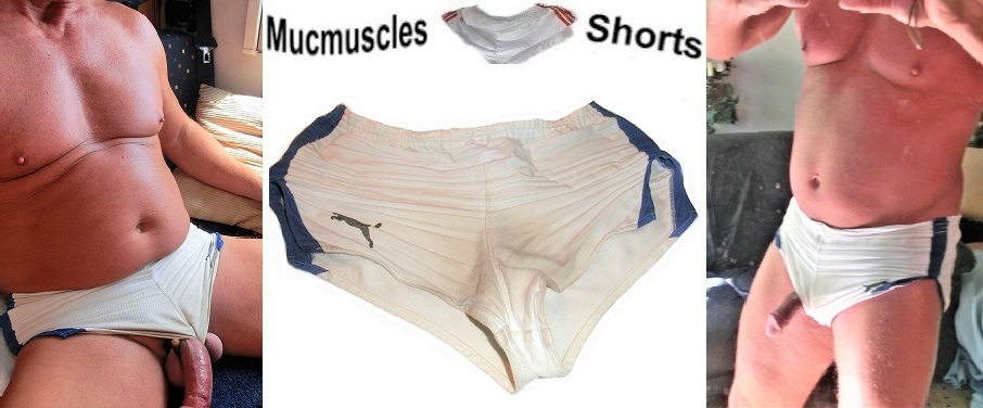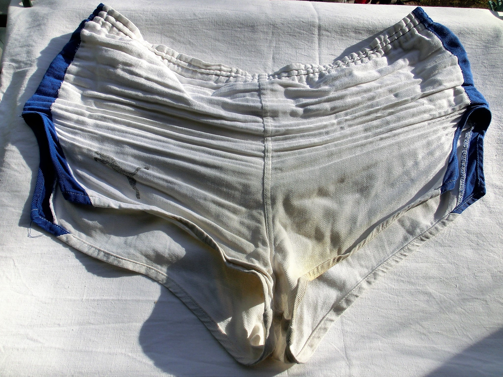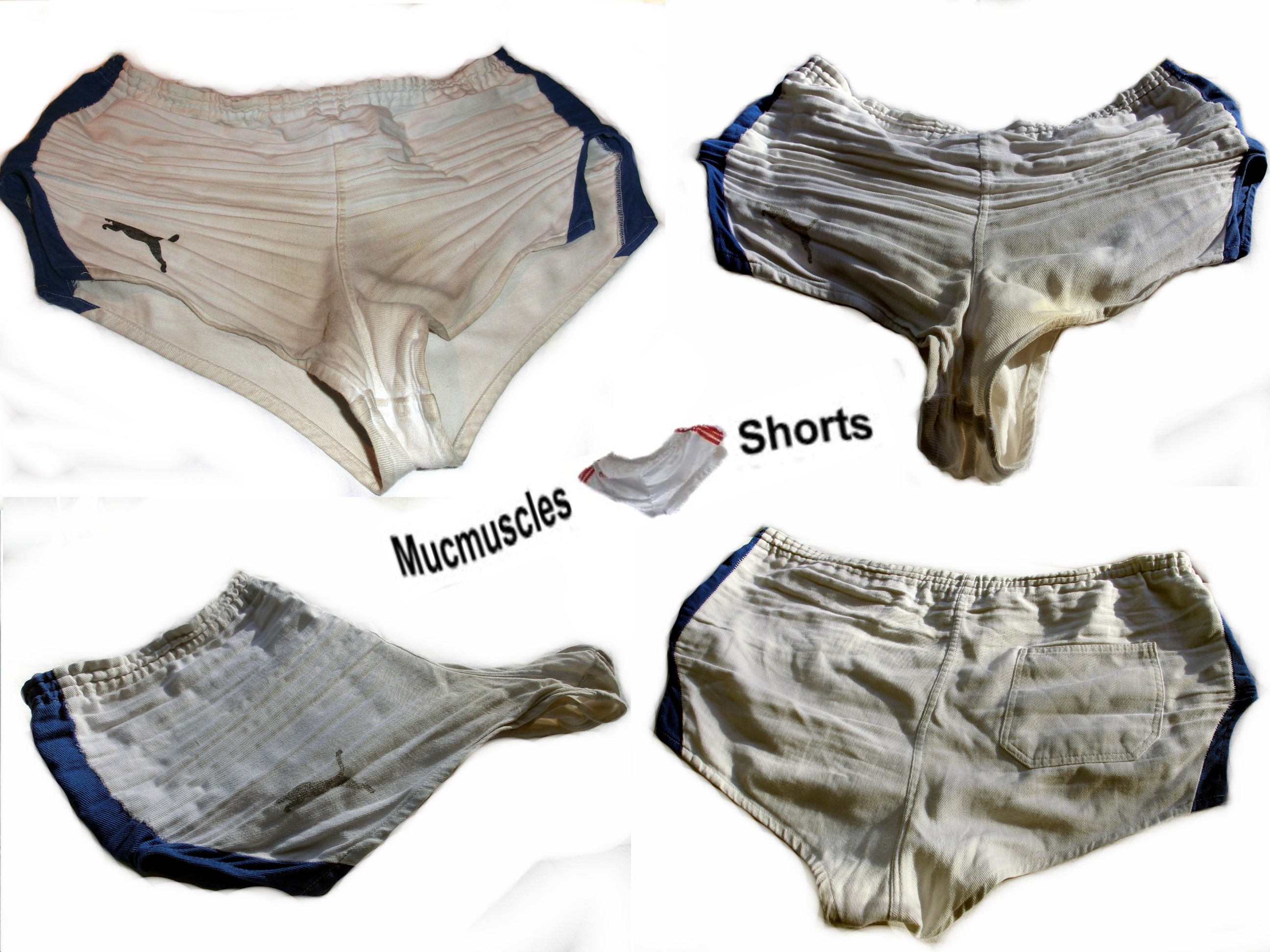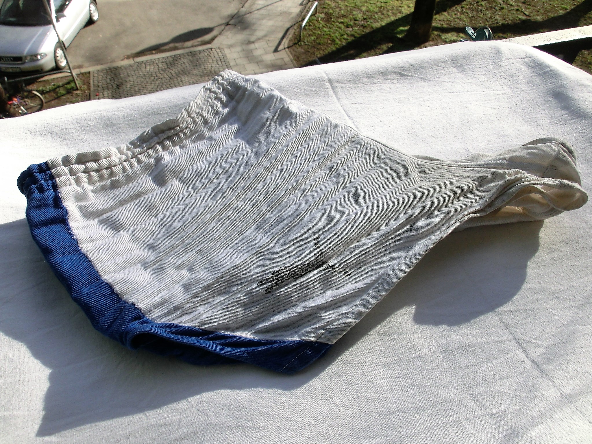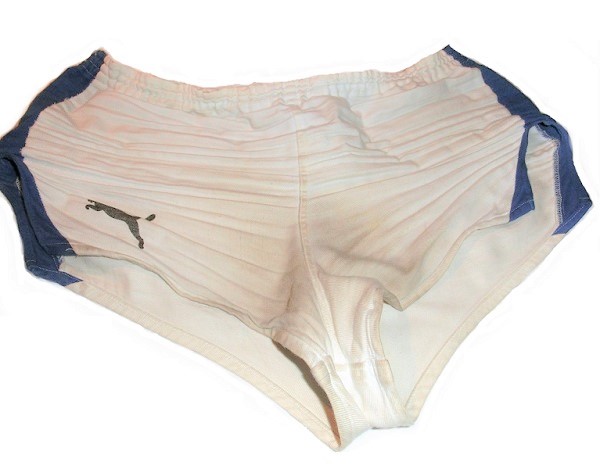 Geile abgefuckte Puma Baumwoll Turnhose - weiß mit blauen Seitenkeilen