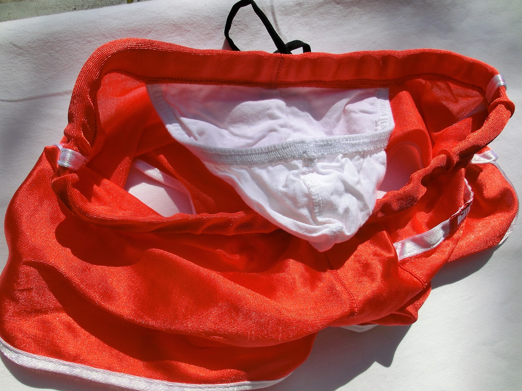 Rote Barcode Berlin Shorts mit integriertem Slip in Beutelform